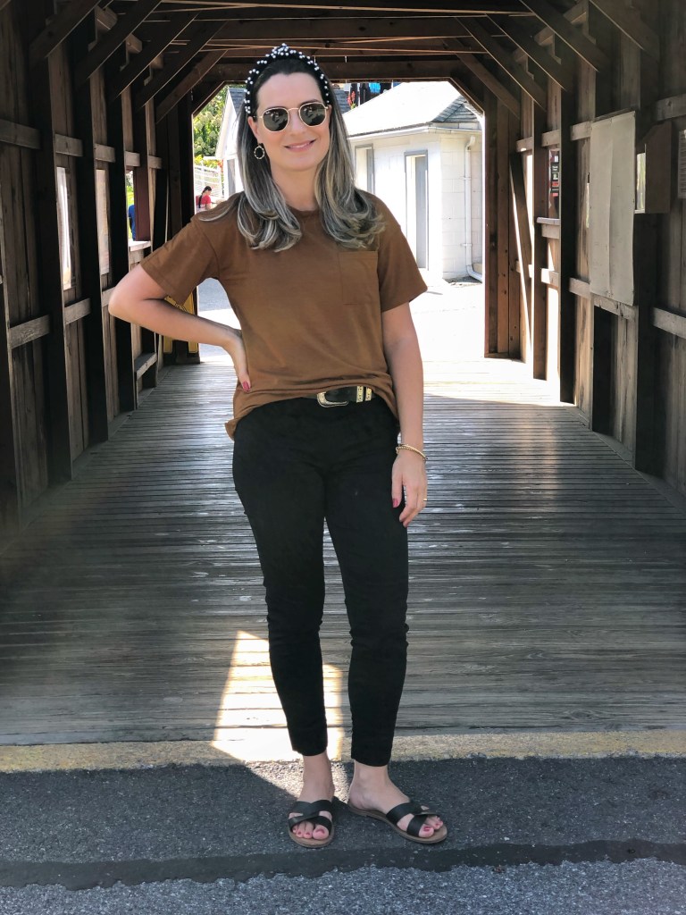Lastly, an outfit that is part of my everyday wear. I love tee shirts and this color is so nice for fall and winter. This Pocket Patch Tee goes with everything and its only $8! You cant beat that!
