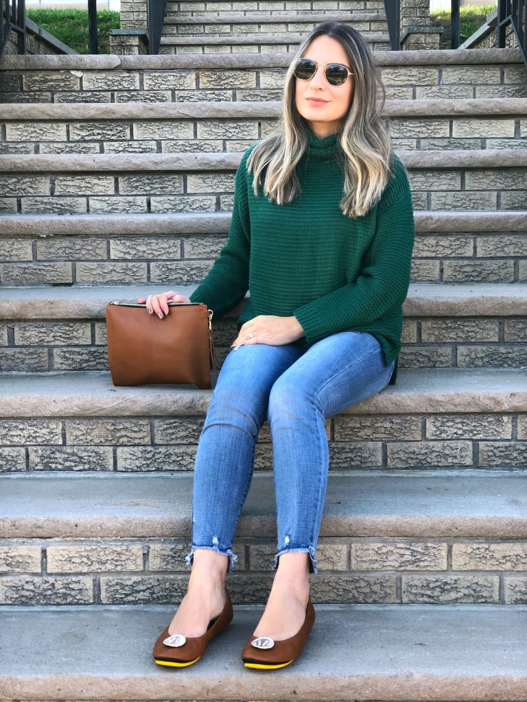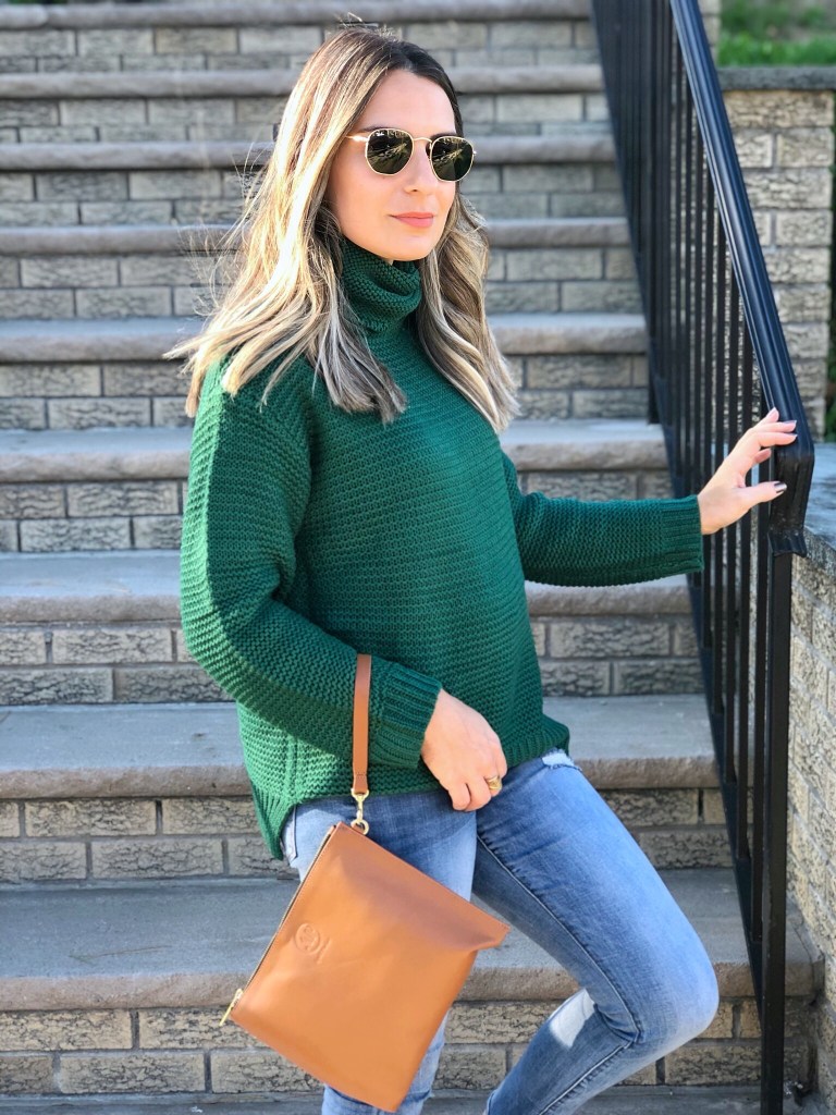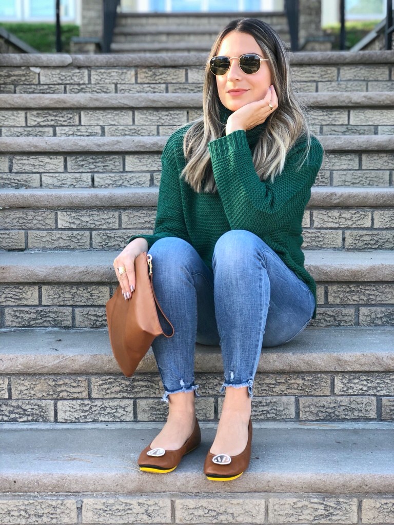 How is your week going? I am trying to enjoy the last days of fall. It is getting cold so fast and I cant believe pretty soon will be snowing, uhg! Anyways… I wanted to share one of my go to casual outfit this season: cozy sweaters, skinny jeans and flats or booties. I choose this nice split side high neck sweater in a great green color. Its very soft and cozy, perfect for the fall weather. I paired with jeans and flats. A nice way to dress up a little and be casual enough to run errands with the kids. Dont forget that together with Shein I have a coupon code for extra discount for you guys. Just use code Q4padoni20 at checkout for any perchasse you make. This is valid until Dec 31st.