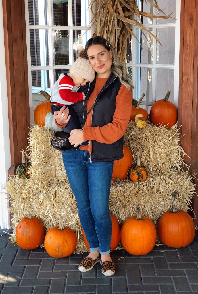 My next outfit I more to go to an event with my baby and it was perfect. I really wanted a puff vest and this one from Shein is amazing. It keeps you warm and its perfect for a casual outfit. I also wore the leopard espadrilles again. I am telling you guys, this shoes are so comfy and its true to size.