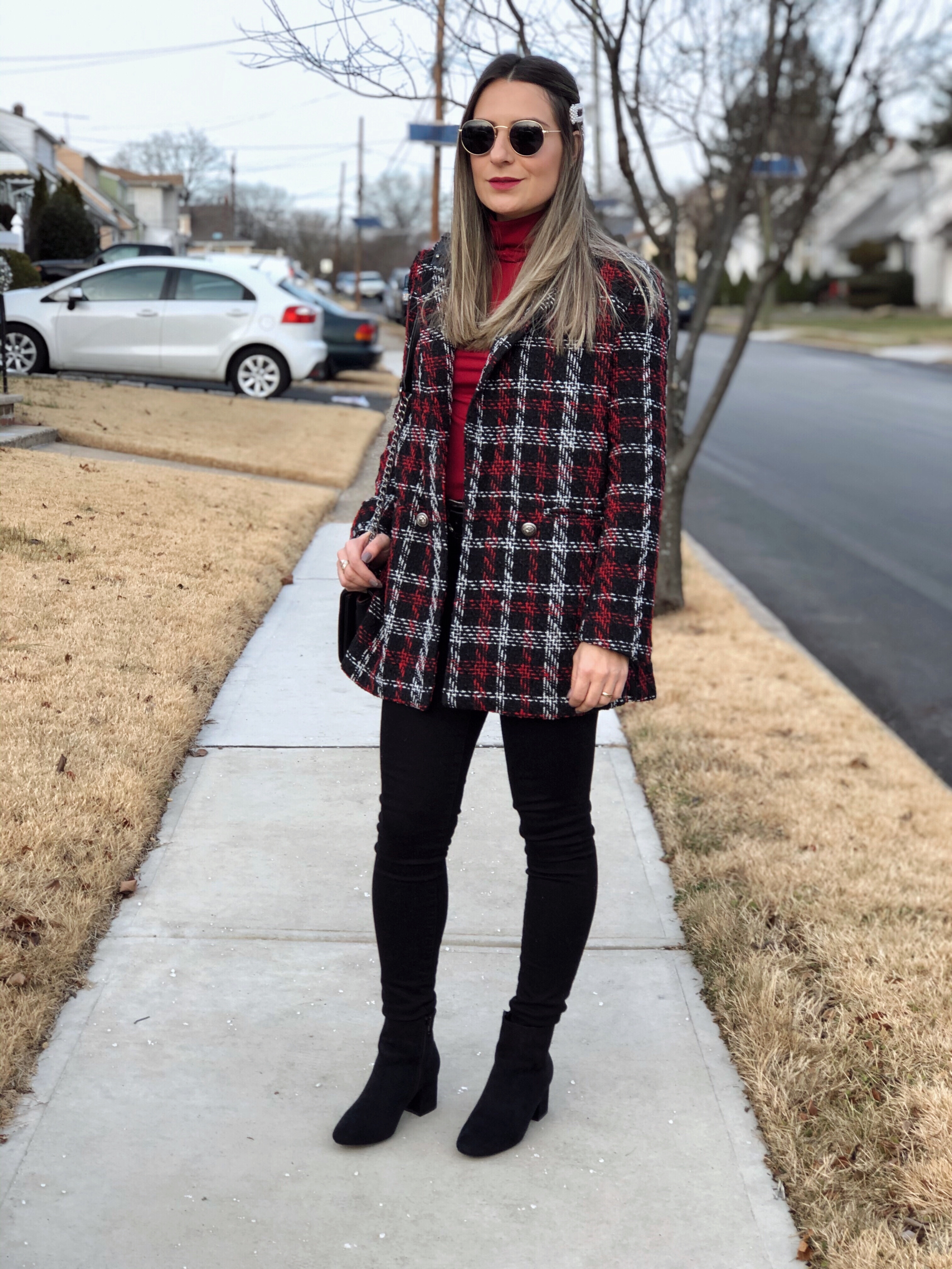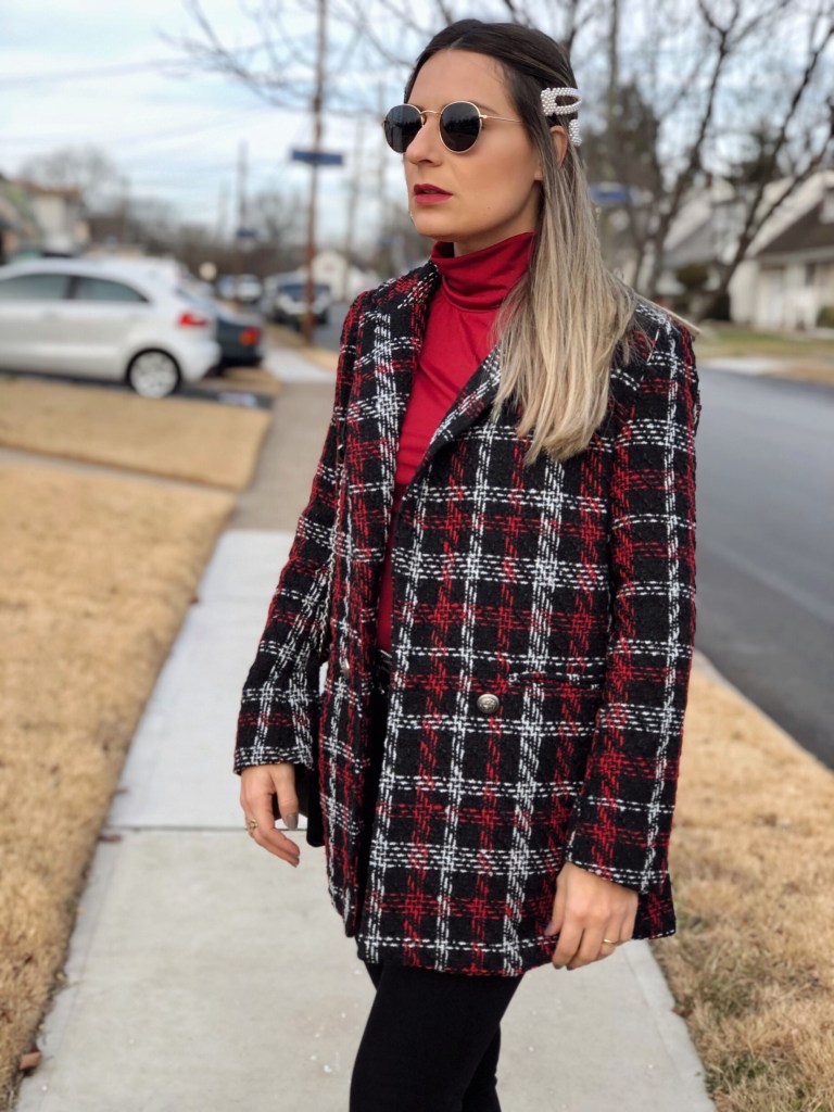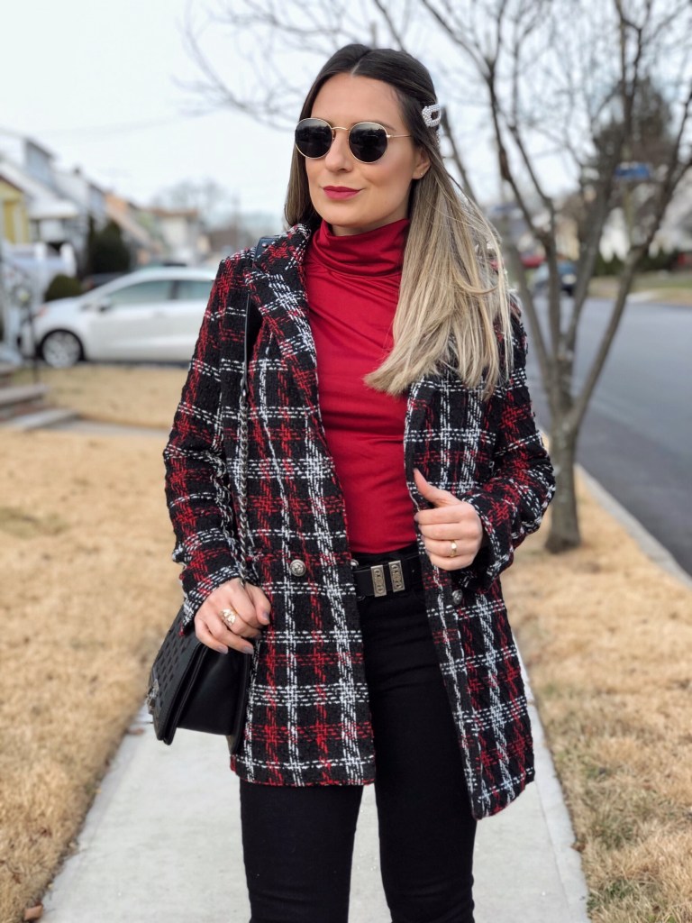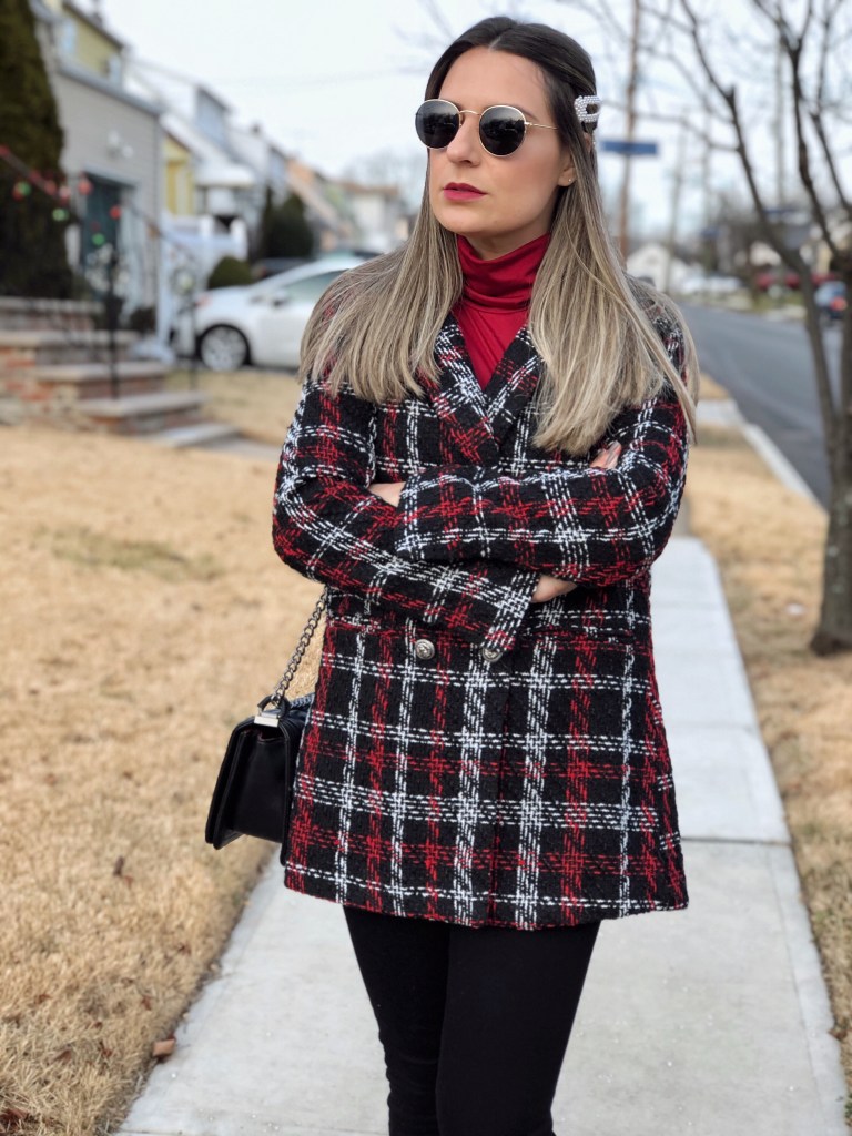 I’m a big believer in having one great statement piece as the focus of an outfit. For this look it happens to be this fabulous plaid tweed Coat from Shein that I’m sharing with you today. Plaid is a huge trend this season and Shein has a great selection of cute palio blazers, jackets and coats to choose from. The fit of this jacket is super flattering. It’s double-breasted, which I think always looks rather regal and feminine. It’s beautifully tailored and looks great with pants or over a dress or skirt. For this outfit I chose black pants and a wine color turtleneck. This is definetly a statement jacket that is worth having in your closet. And as always, I have this coupon Q4padoni20 for an extra 15% off when you shop Shein online. http://shein.top/6xysog1 Search ID 911937