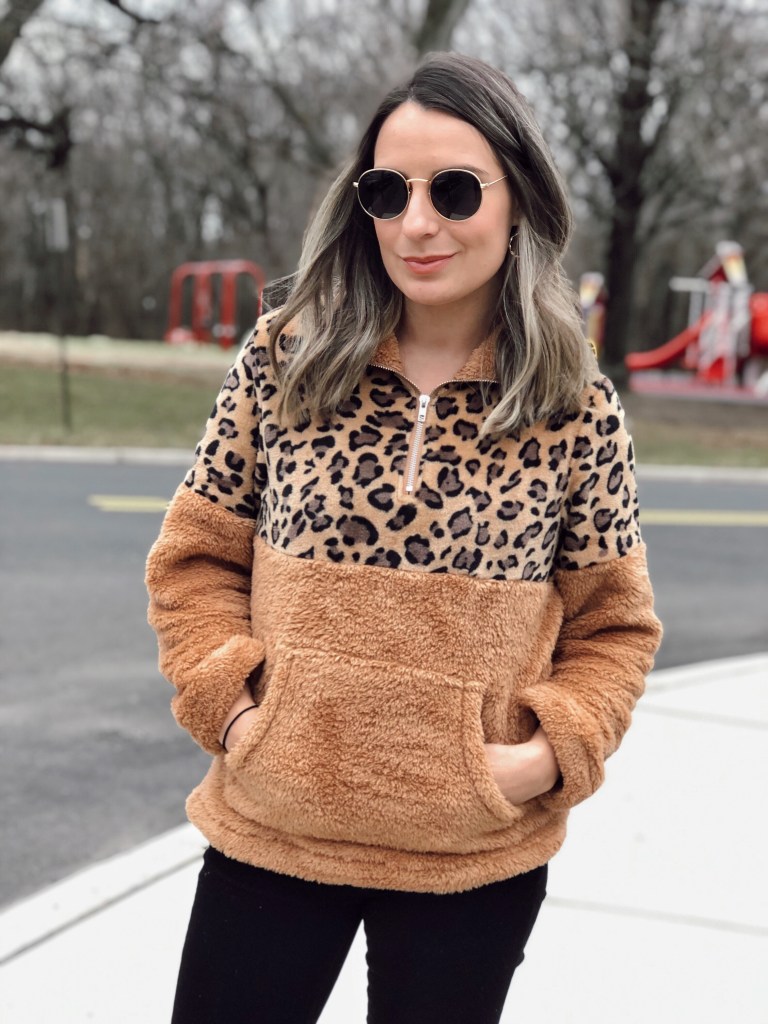 I hope you are all doing fine! I wanted to share this outfit and explain why is my favorite! Seriously, I am in love with this leopard teddy pullover. Its a must have for fall and winter and the teddy trend is still going so why not?! This pullover is super cozy and comfy and perfect for a day to day casual wear. I paired it with black jeans and black booties for a total comfortable outfit. It is now on sale on my fave online store, you guys know… Shein! And I still have a discount code for my readers. Just use code Q4PADONI20 and get an extra 15% off. Awesome right?!