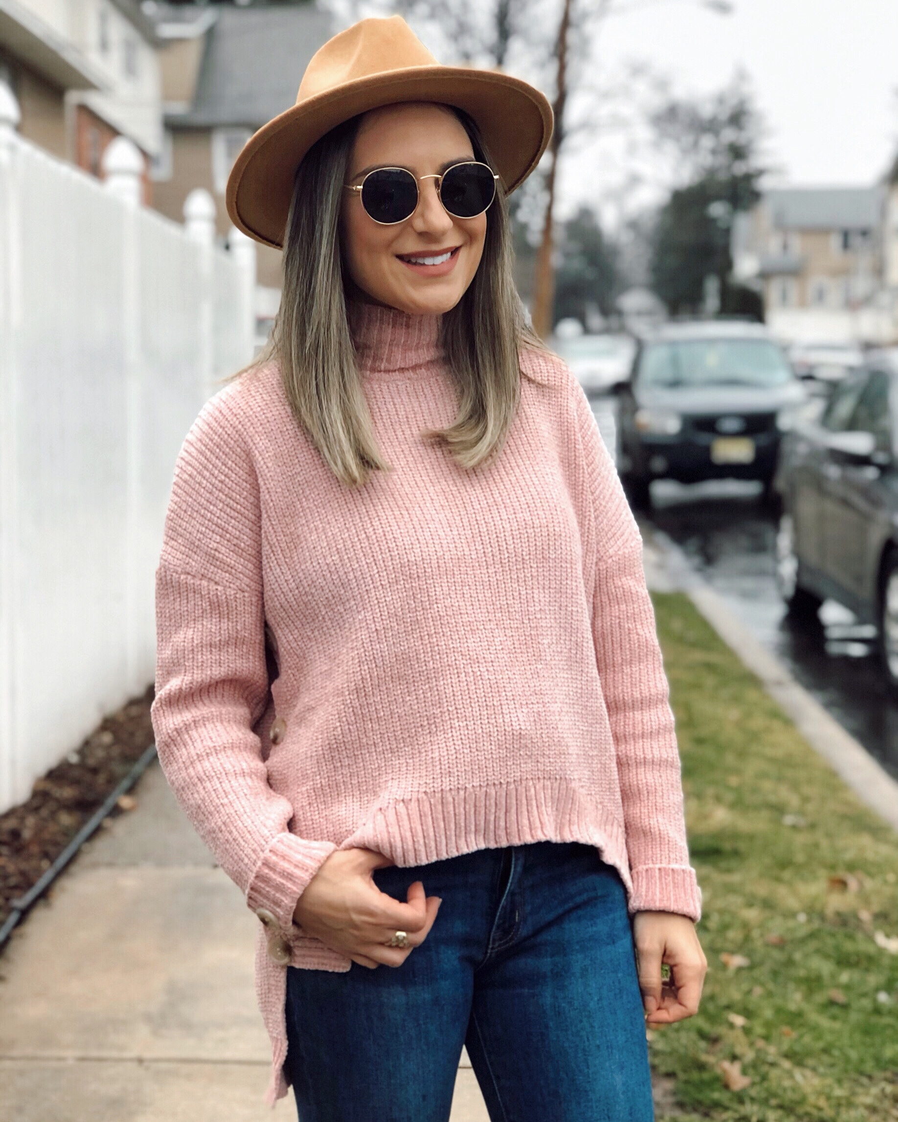 This pink high low hem sweater has been my go to this week. Its very casual, dress nicely and is super cozy. Plus its pink and I love wearing pink and red the week before Valentine’s day! http://shein.top/rlngrfl ID 855686