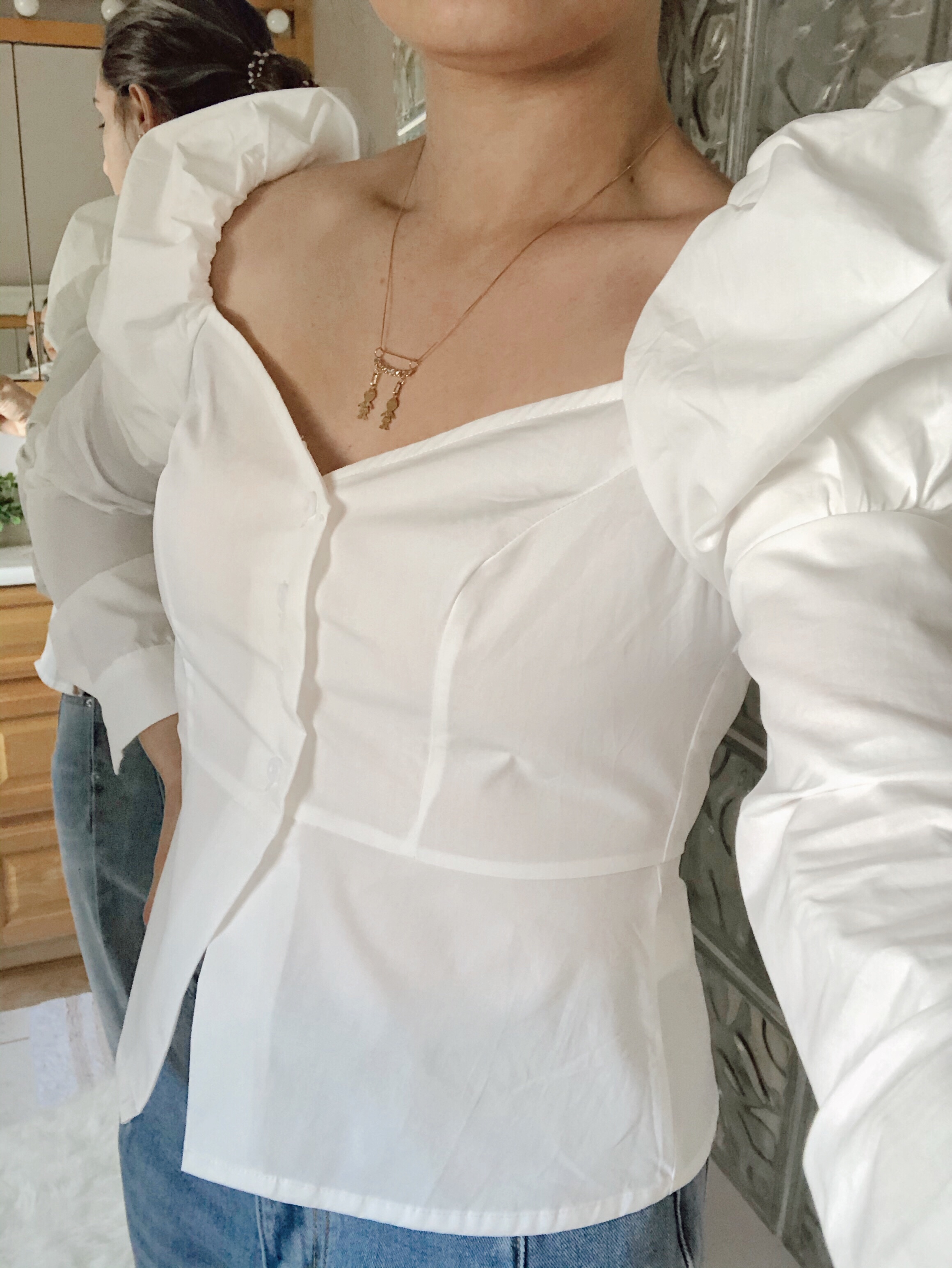 Lastly, I am in love with this shirt. The cut is so beautiful and looks perfect in the body. I really hope this quarantine is over soon and we can resume our normal lives. I would love to wear this cute top with jeans and high plataform sandals this spring!