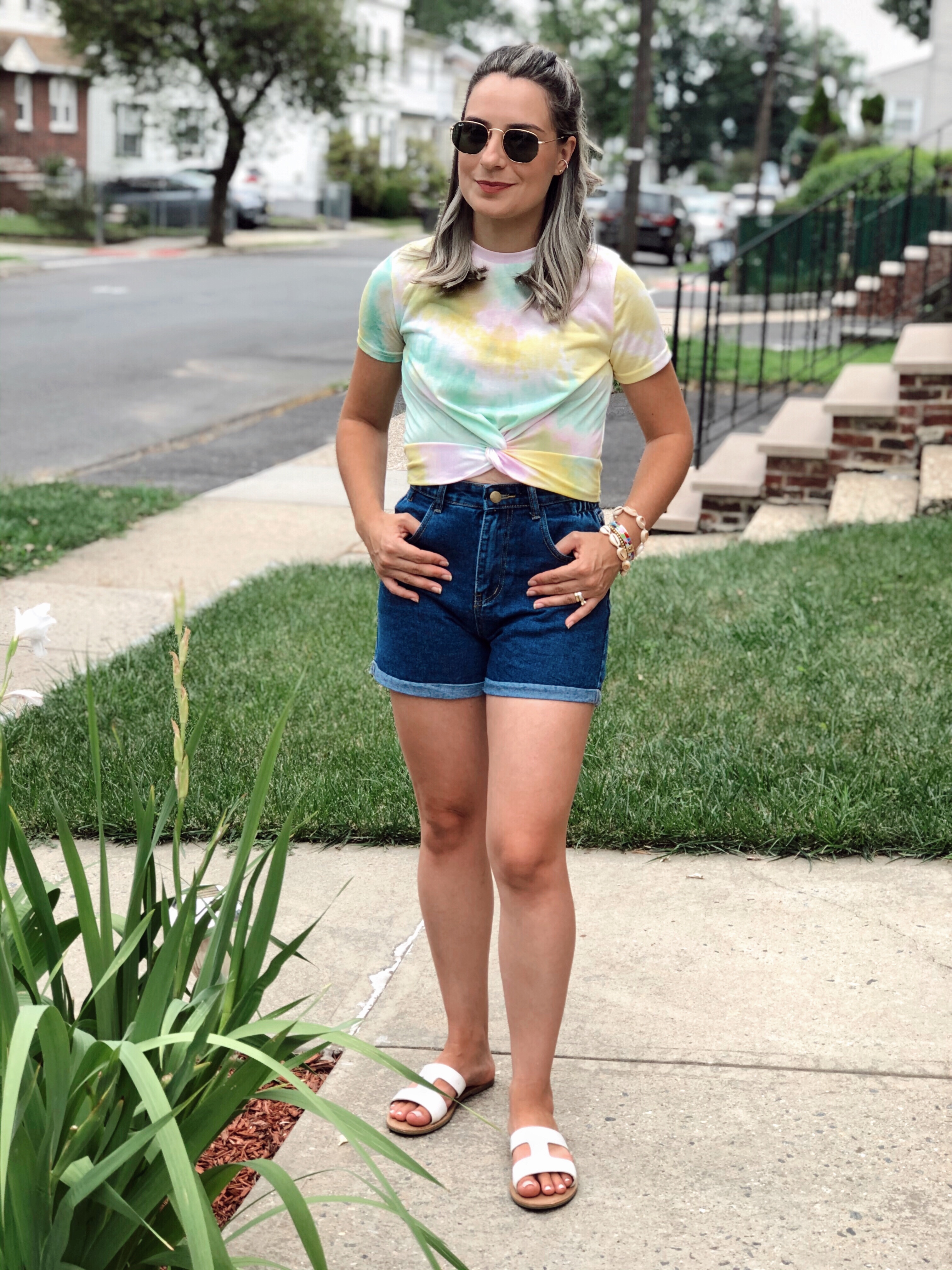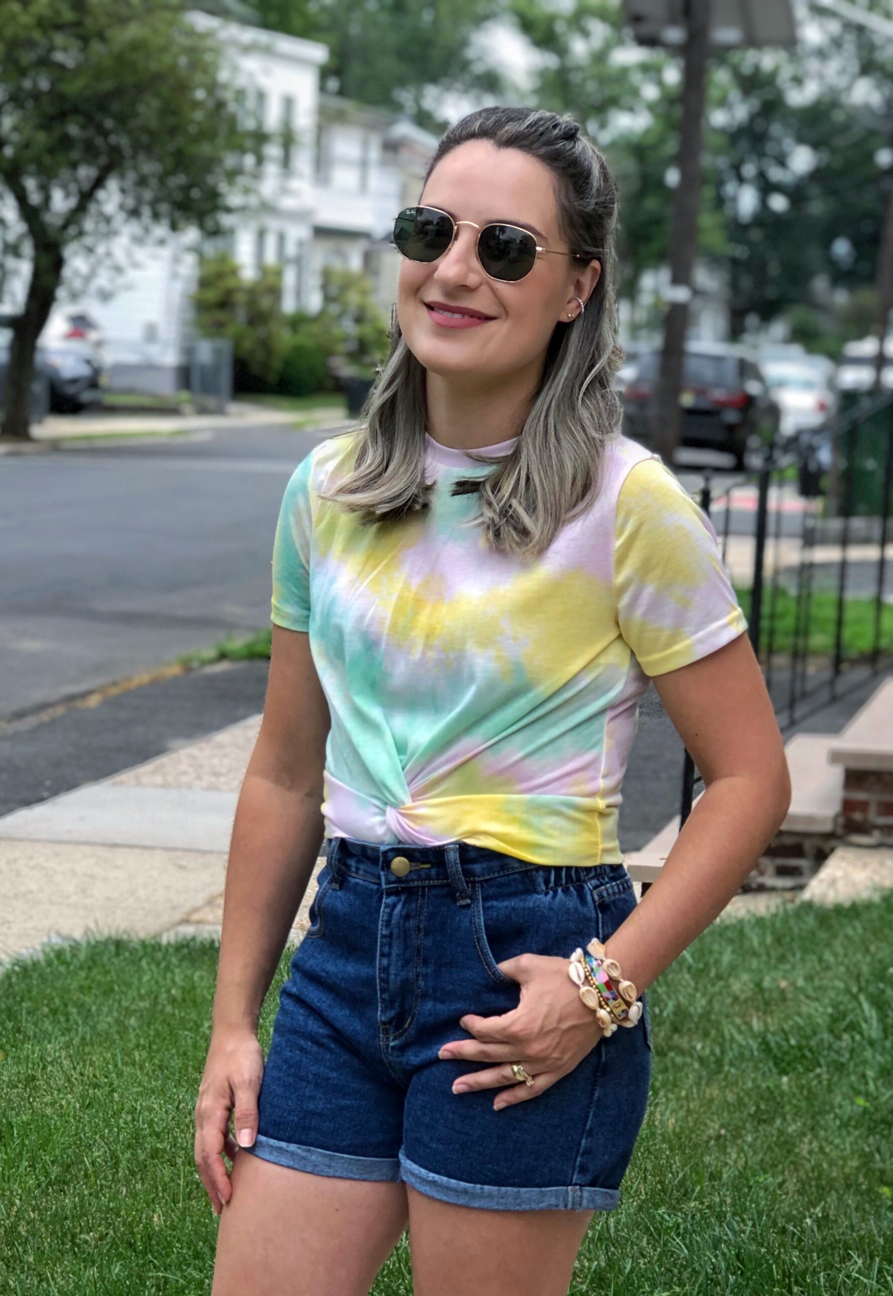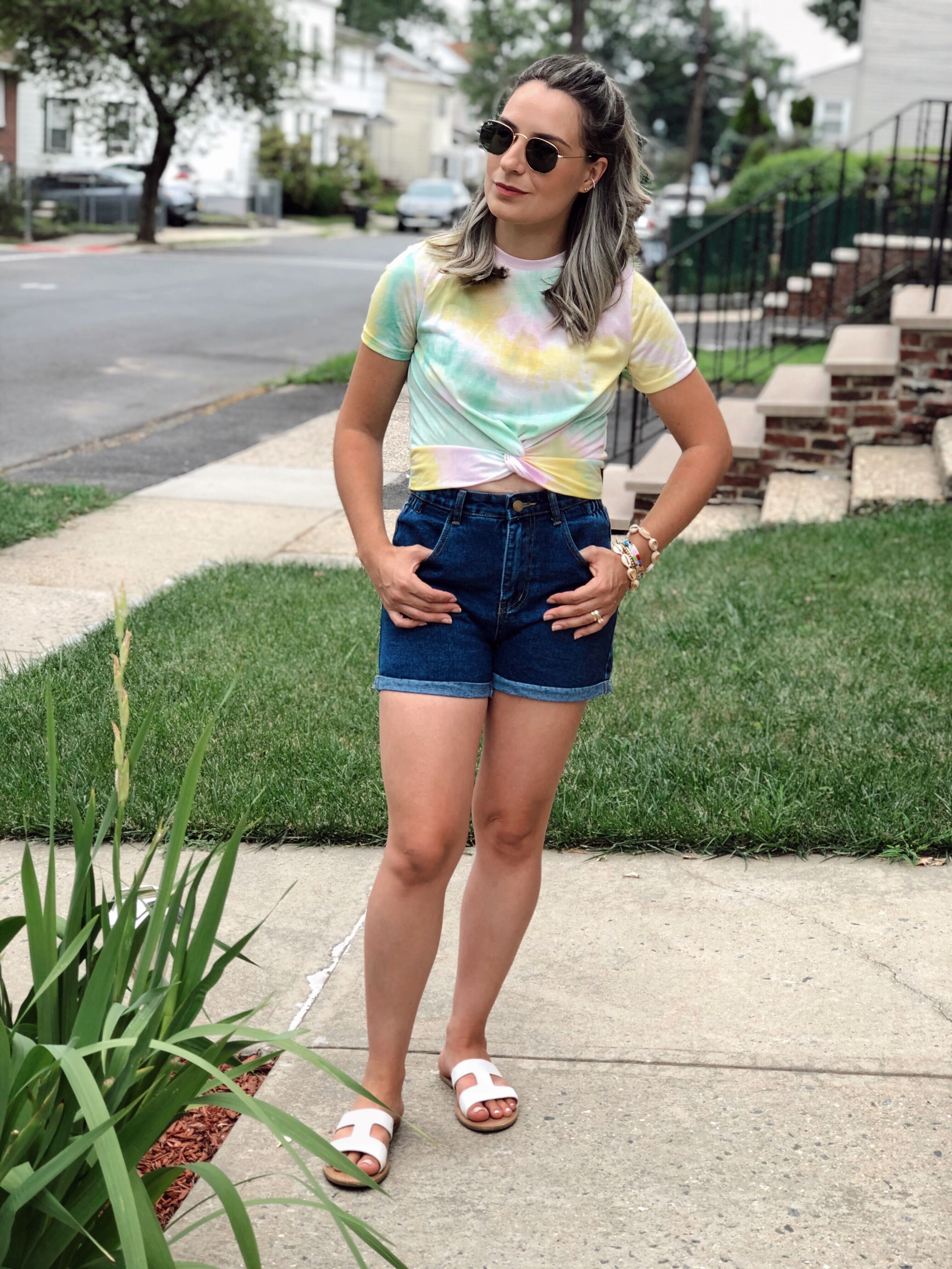 The third look involve a tie dye tee shirt! I’m loving this trend lately. This tee is cropped and looks super cute with a high waisted shorts or pants. Love it!