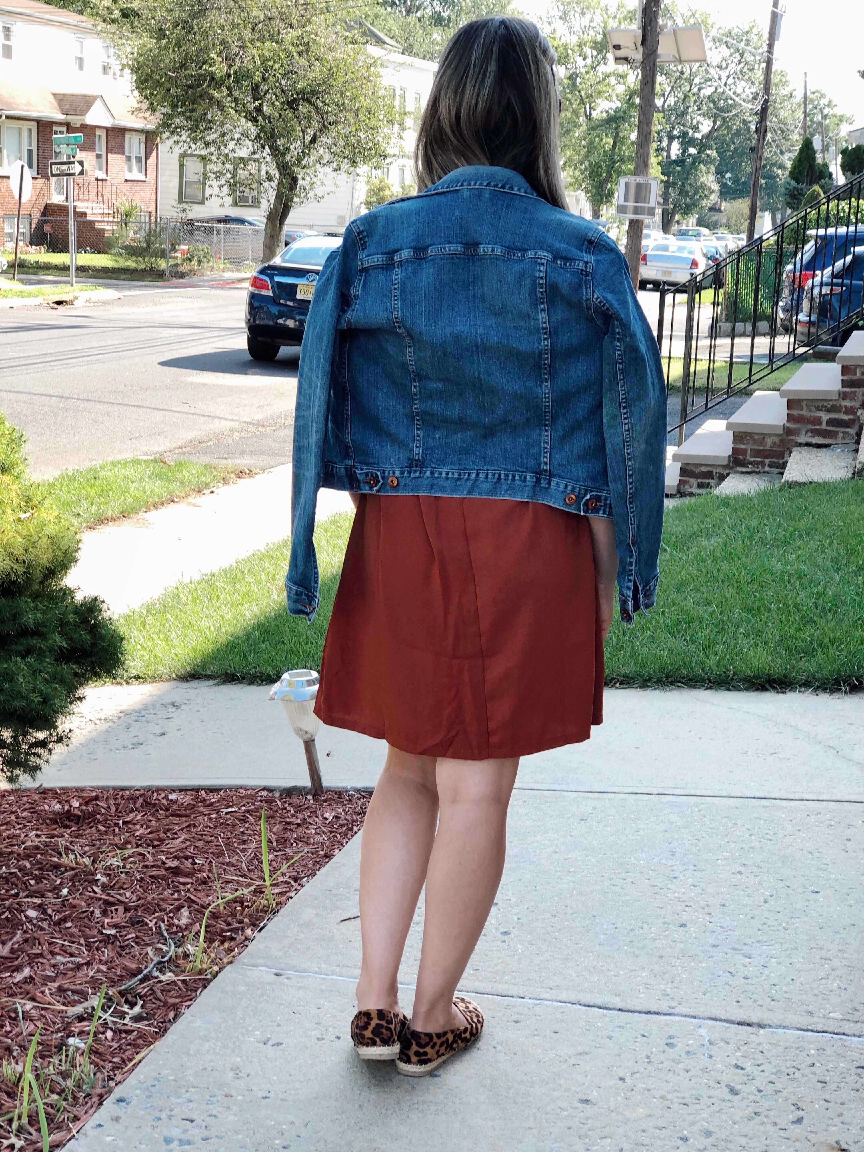 I’m just not ready to say good bye to summer quite yet! But the days are starting to get cooler and that means in no time fall will be taking place. I love dressing up for fall, is actually my favorite fashion season, but I also love the beach and all that summer has to offer. That being said I have been getting ready with my summer outfits and making them work into transitioning to fall wardrobe. Like this simple and beautiful rust brown dress. It looks super cute for a summer night paired with flat sandals and a straw bag. But it also looks adorable with a little jacket over it and some leopard flats. The denim jacket adds texture and makes the outfit very cool. Bothe dress and jacket are a staple and perfect items to dress for summer or fall. Which one is your favorite?