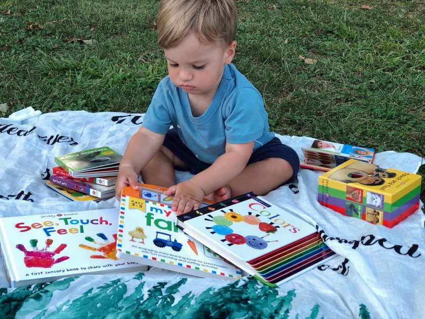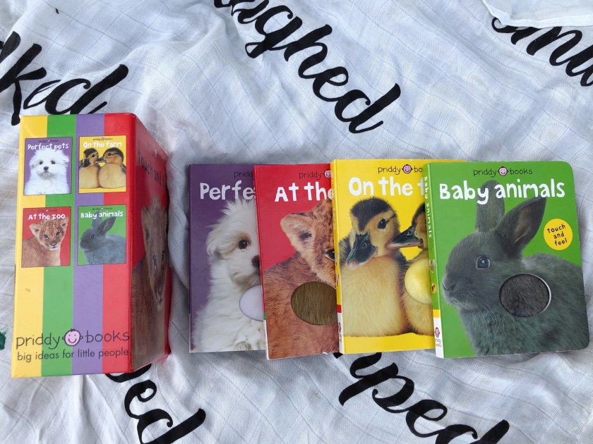 There are a lot of titles to choose from out there. We have Priddy books that we really like it. They are great for various stages of learning ( words, numbers, colors, ABC’s) and great for helping your baby reach developmental milestones.