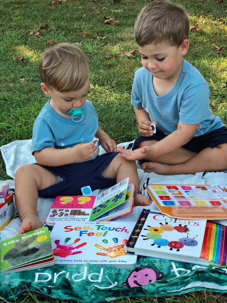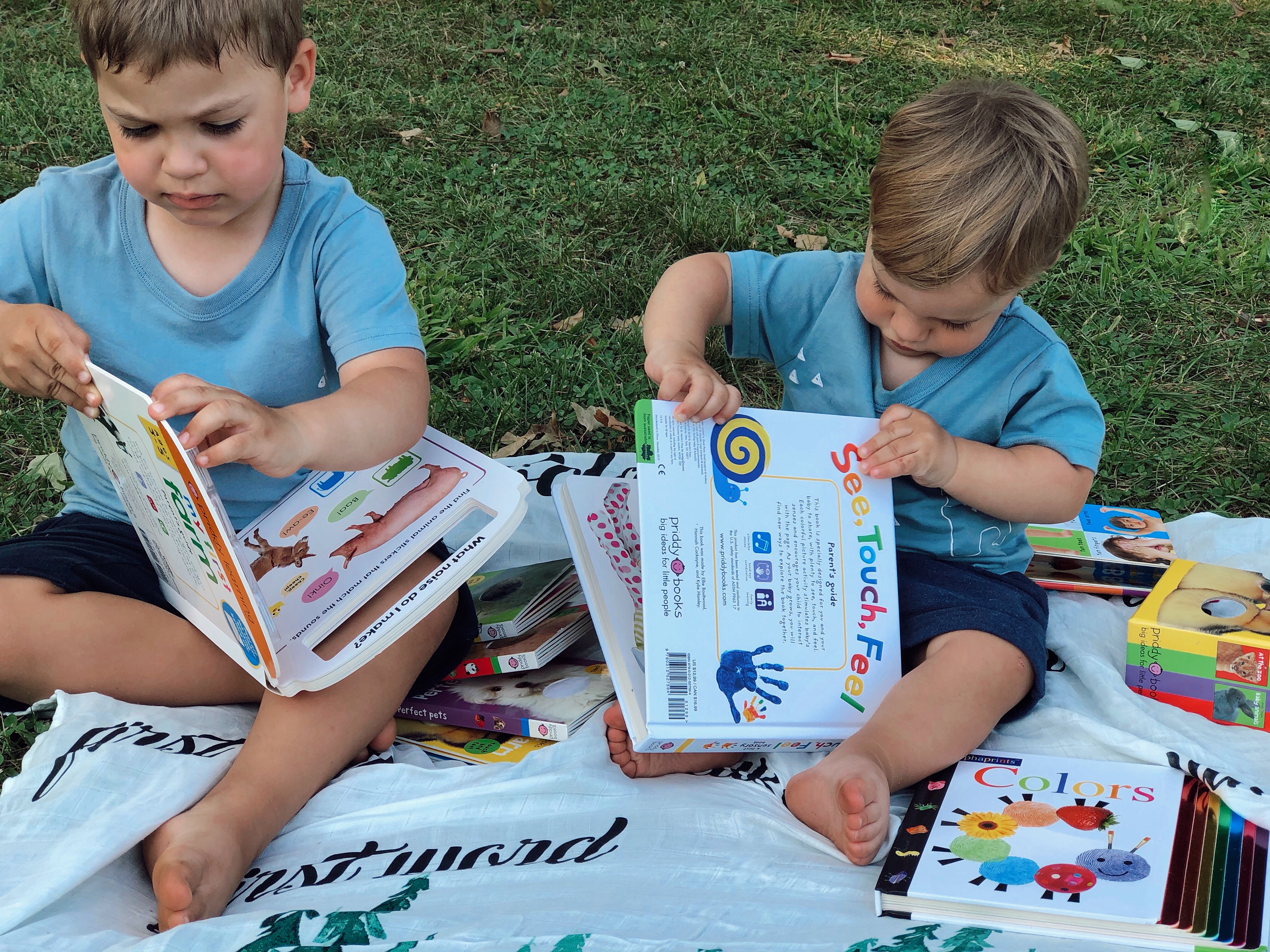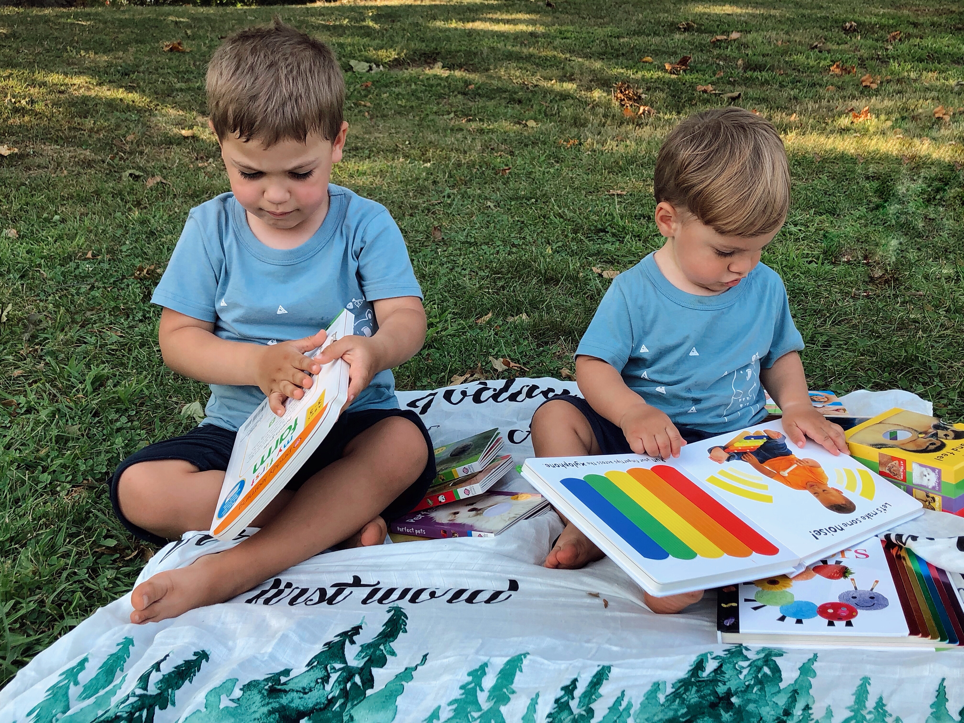 I like to reserve a time of the day where I sit them down in the backyard or in the living room, put a variety of books out and just have fun together. When little ones are engaged and enjoying themselves, they are learning. They always look forward for reading time and that makes me happy to see their positive interactions with books.