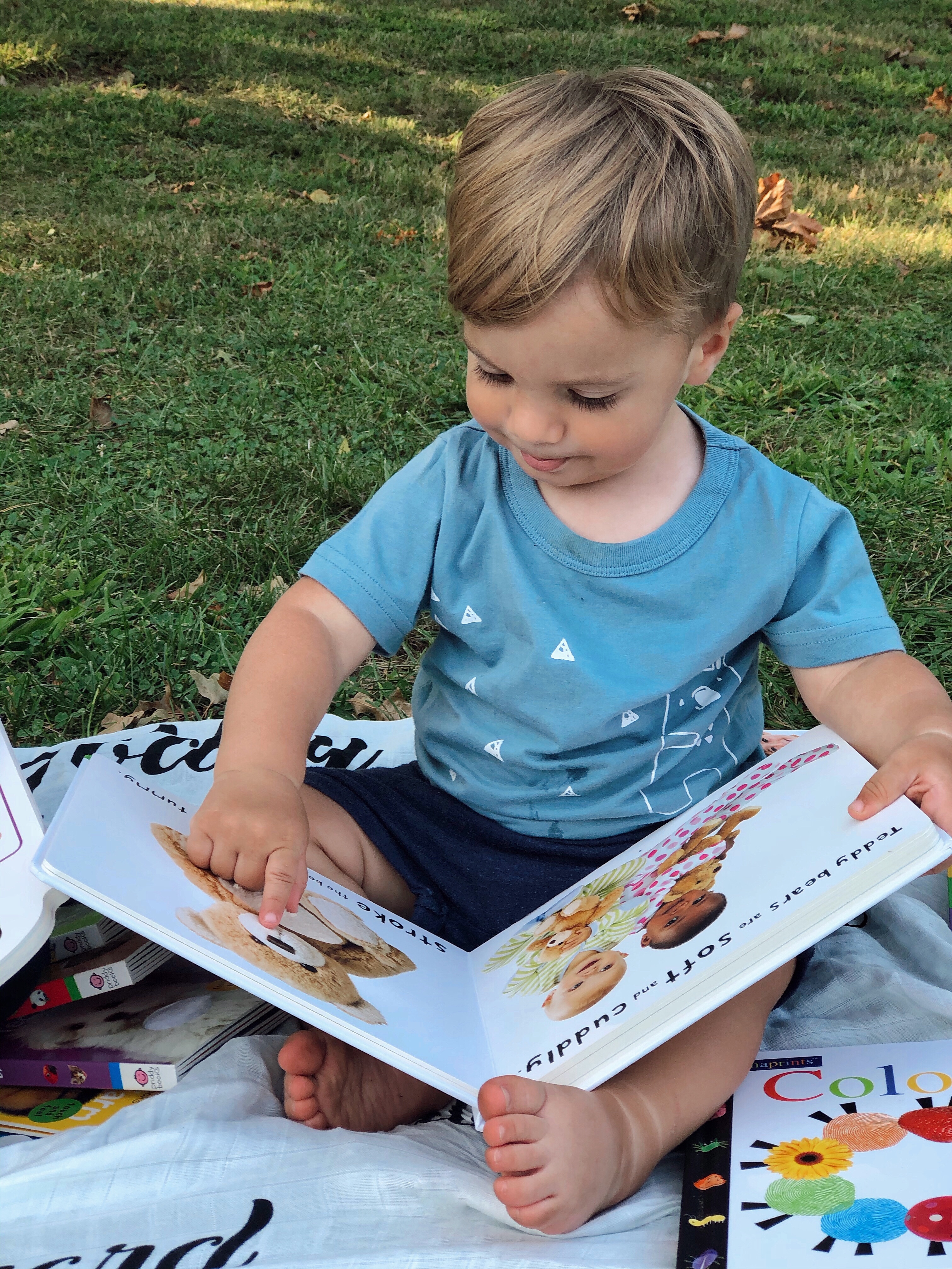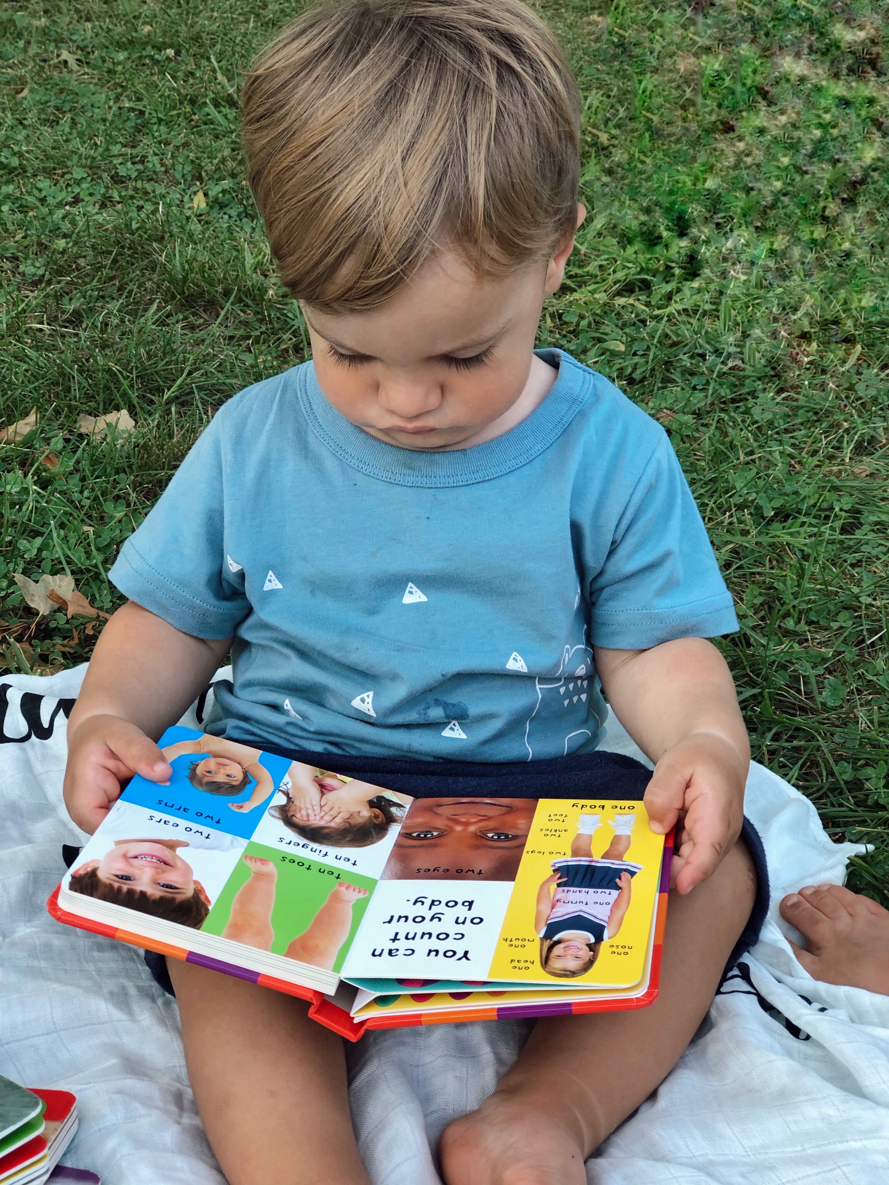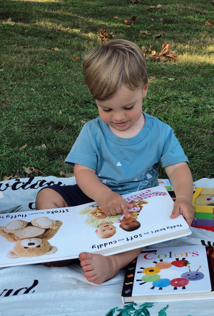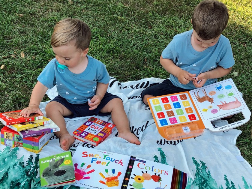 I like to reserve a time of the day where I sit them down in the backyard or in the living room, put a variety of books out and just have fun together. When little ones are engaged and enjoying themselves, they are learning. They always look forward for reading time and that makes me happy to see their positive interactions with books.