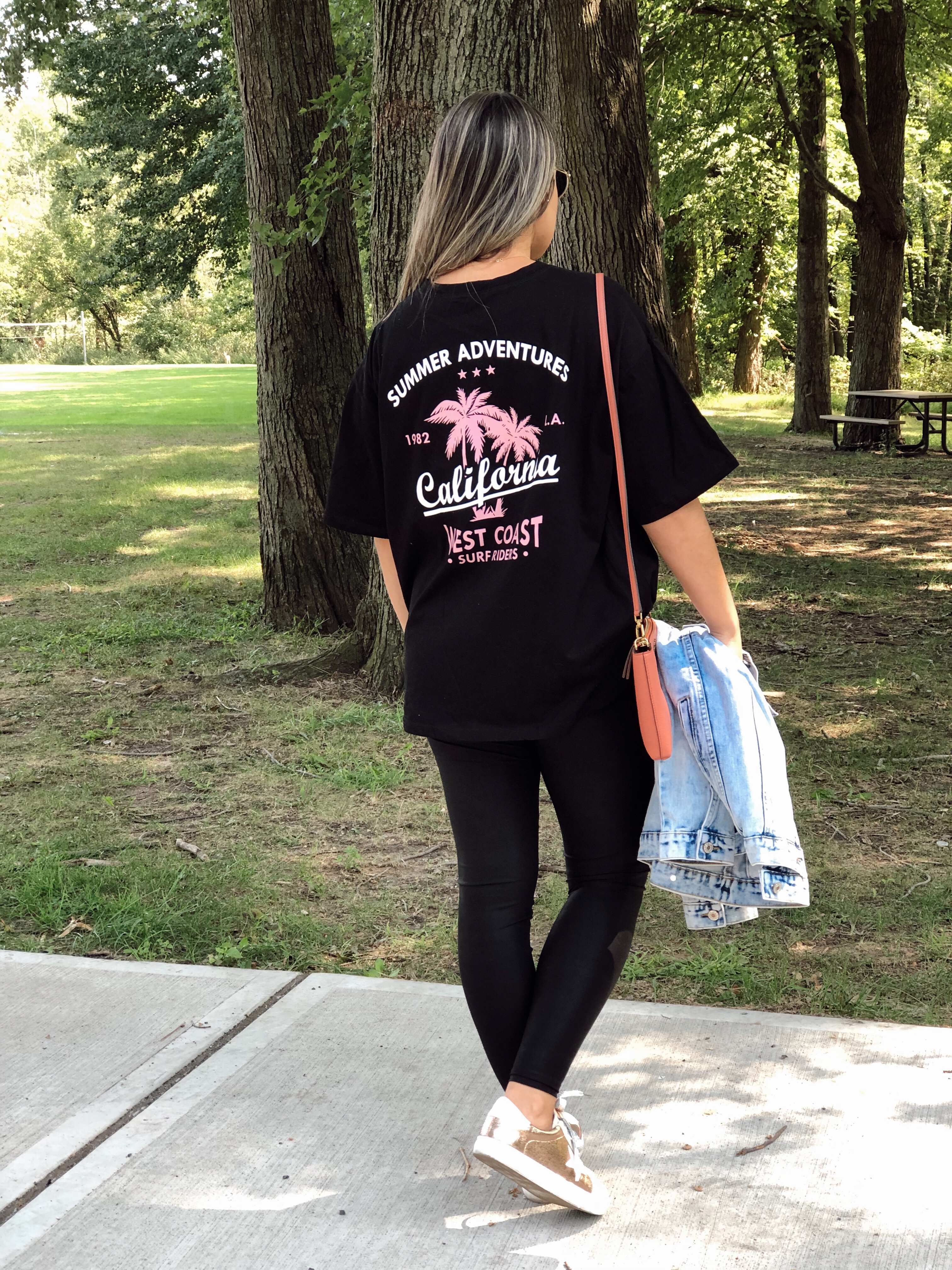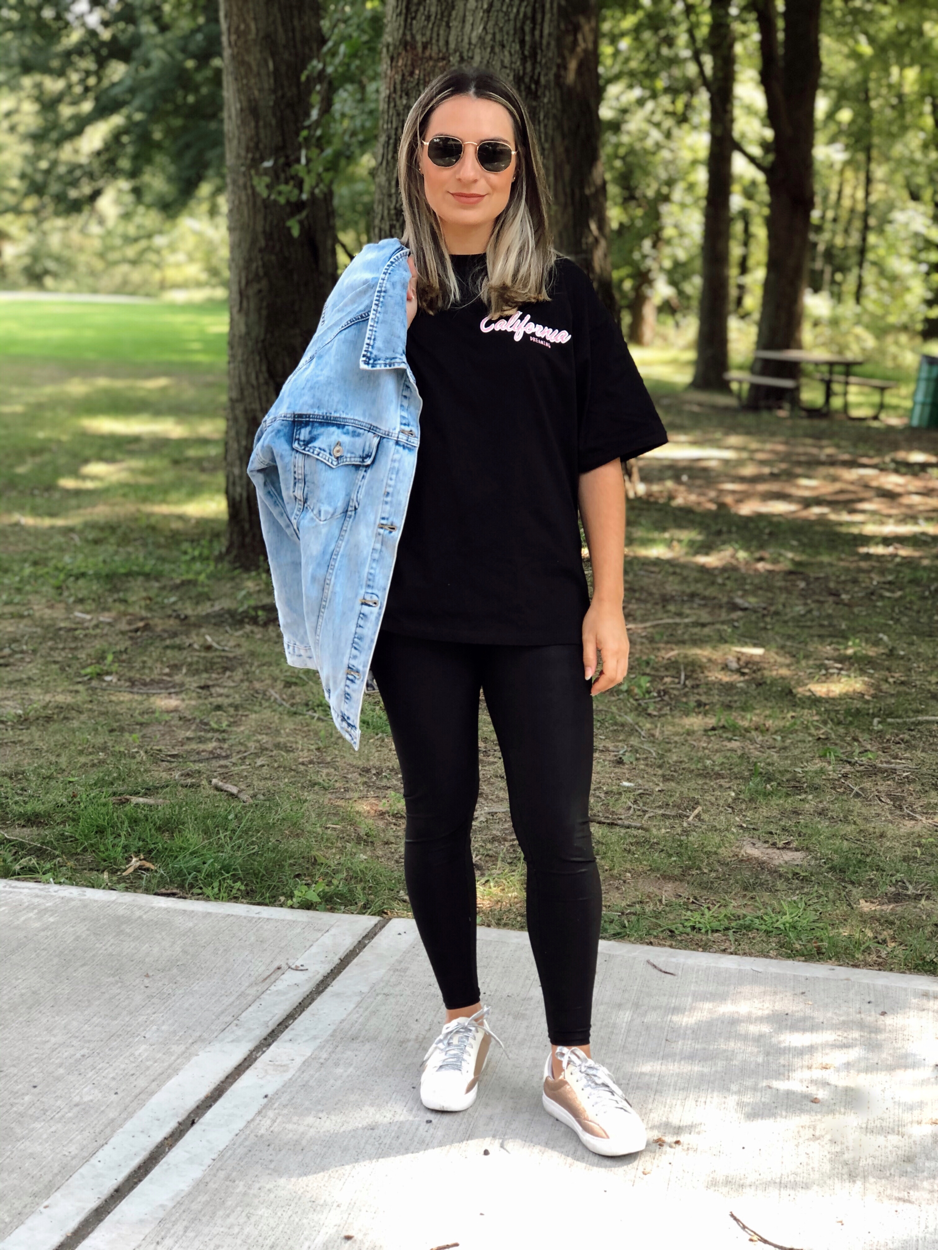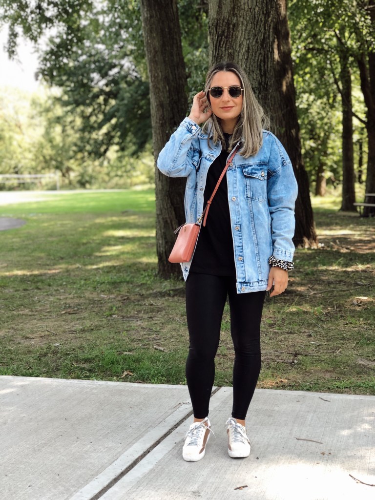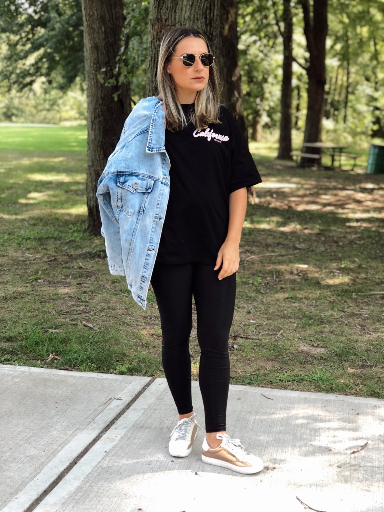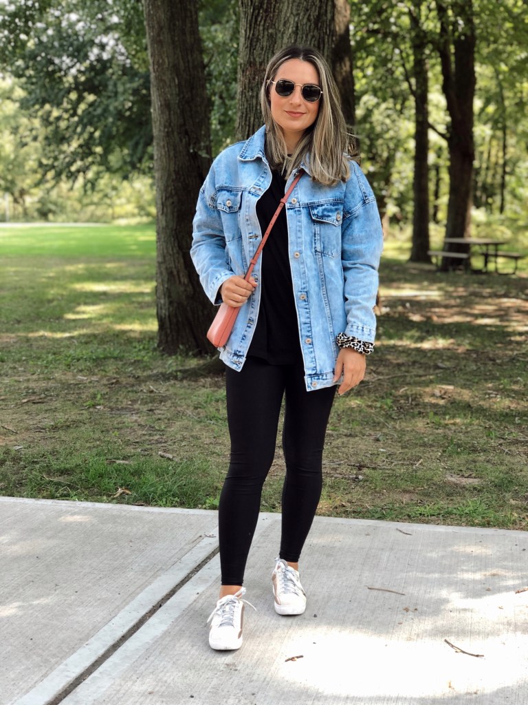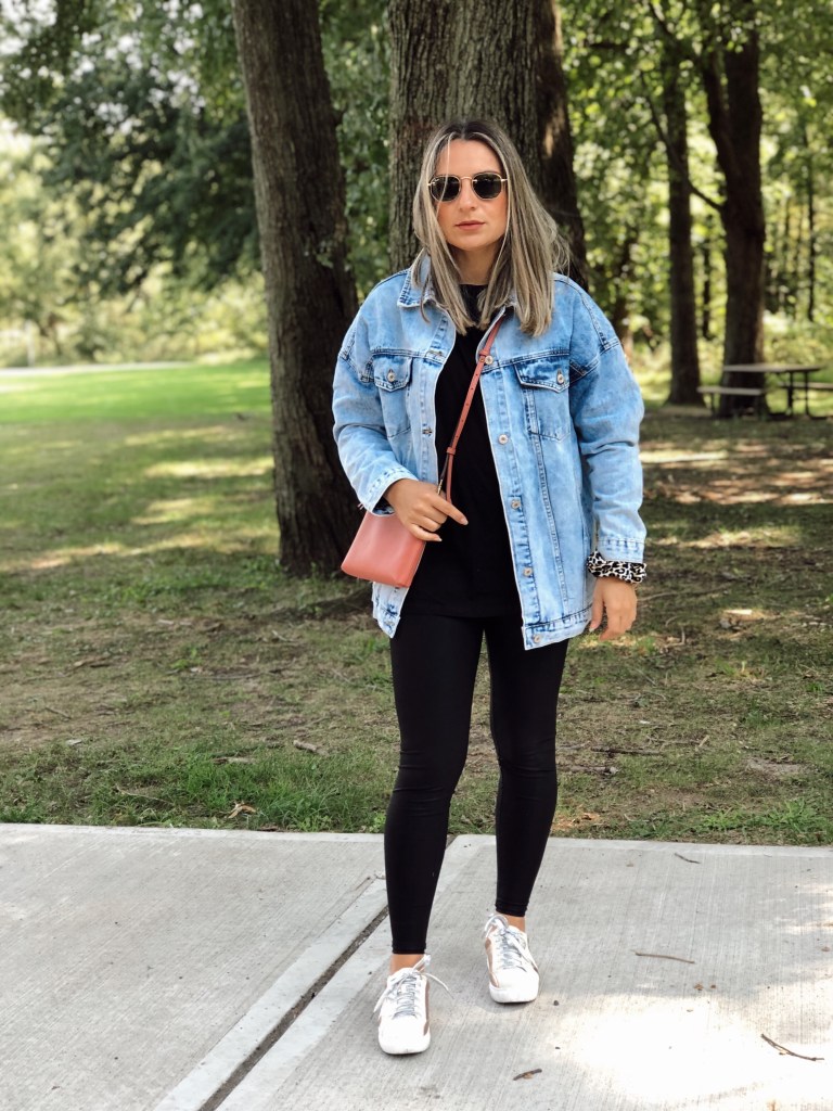 We are welcoming fall season and I really love dressing up and planning outfits during cooler months. I’ve been on a hunt for a nice oversized jean jacket and when I found this one at Shein website I had to get it! It dresses so pretty and it’s not overly huge. The wash is beautiful and I didn’t have to size up. I got the small and it was just how I wanted it. I paired with a also oversized tee shirt and leggings. For a comfy, causal Monday look I opted for sneakers. This is my comfy outfit for runnings errands and playing outside with the kids. I have a cupom code for you guys, just use D2padoni and get 25% off any purchase on Shein. Valid until September 30.