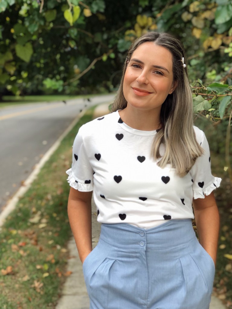 Como foi a segunda feira de vocês! Por aqui um dia bem agitado e nada melhor que uma roupa confortável para passar o dia. Como vocês sabem eu amo uma calça diferente e essa de cintura bem alta e cor estilo jeans fica linda para varias ocasiões. Eu optei por usar um tênis branco e ficou bem estiloso. Mas da pra usar com salto também que fica lindo! Combinei com uma camiseta super fofa de coraçãozinho. ficou uma graça. A Shein sempre tem varias pecas lindas e com preço super acessível. eles entregam no Brasil e usando codigo BRpadoni você ganha 15% de desconto em qualquer compra acima de R$199.