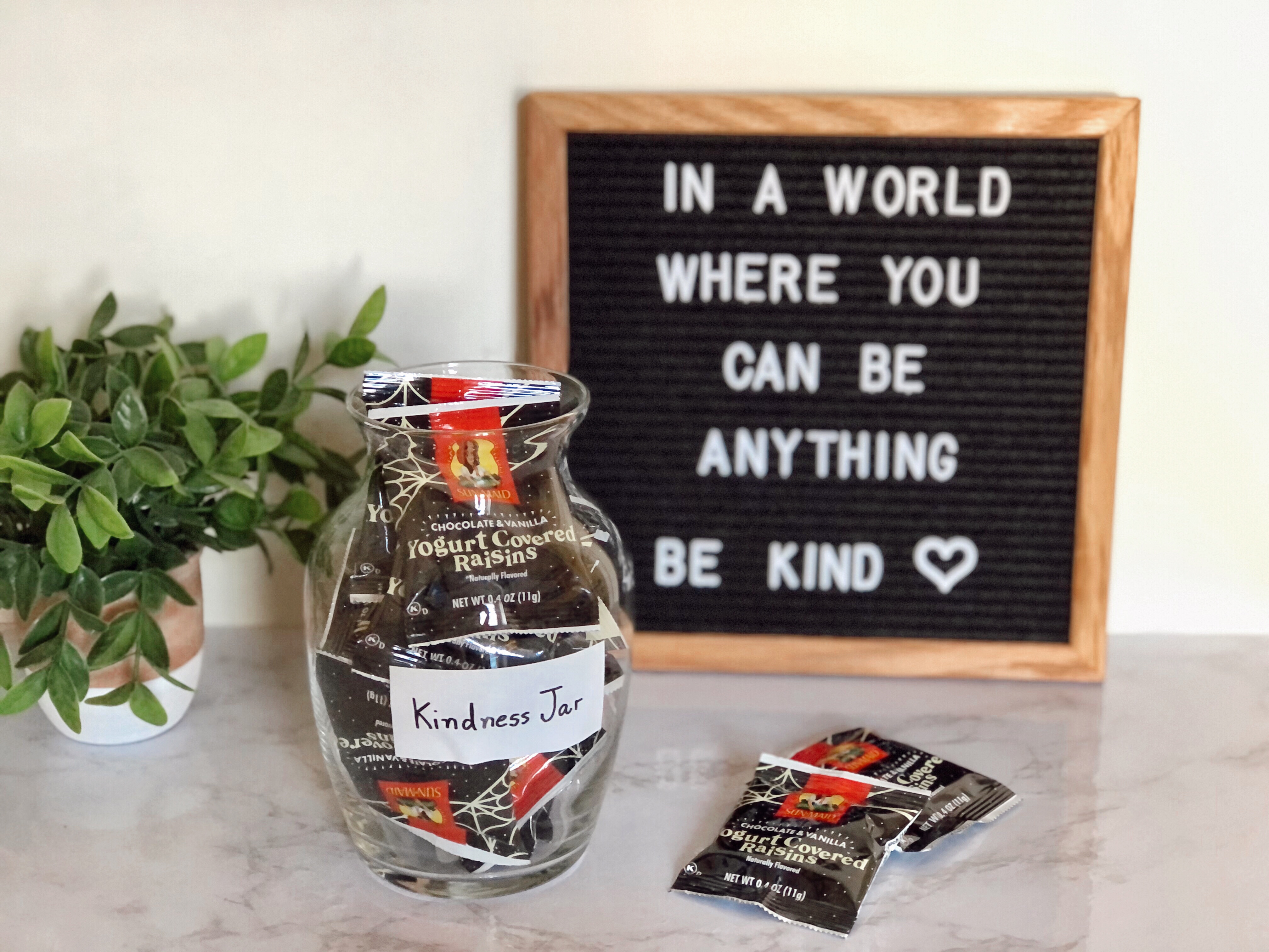 Small kids love a little treat. Fill a jar with Sun-Maid Chocolate & Vanilla Yogurt Covered Raisins and sit down with with your children and explain that your family is going to help each other show kindness by using a “Kindness Jar”. Everytime your little one is caught being kind, he will get to take a pack of treat from the jar. If it’s night time, turn off the lights and let them play with the special glow-in-the-dark packaging. We already started this activity home and it’s been a success!