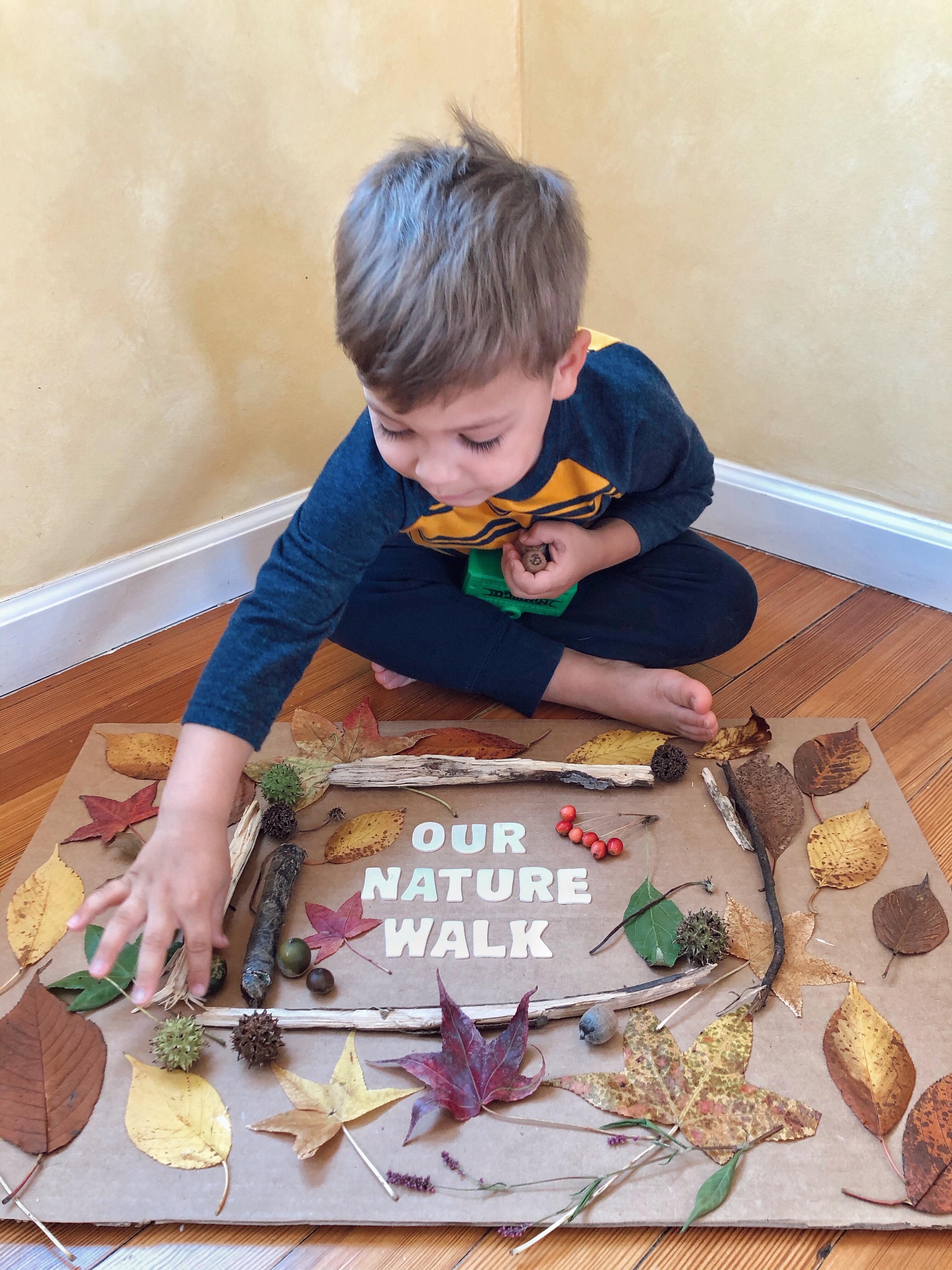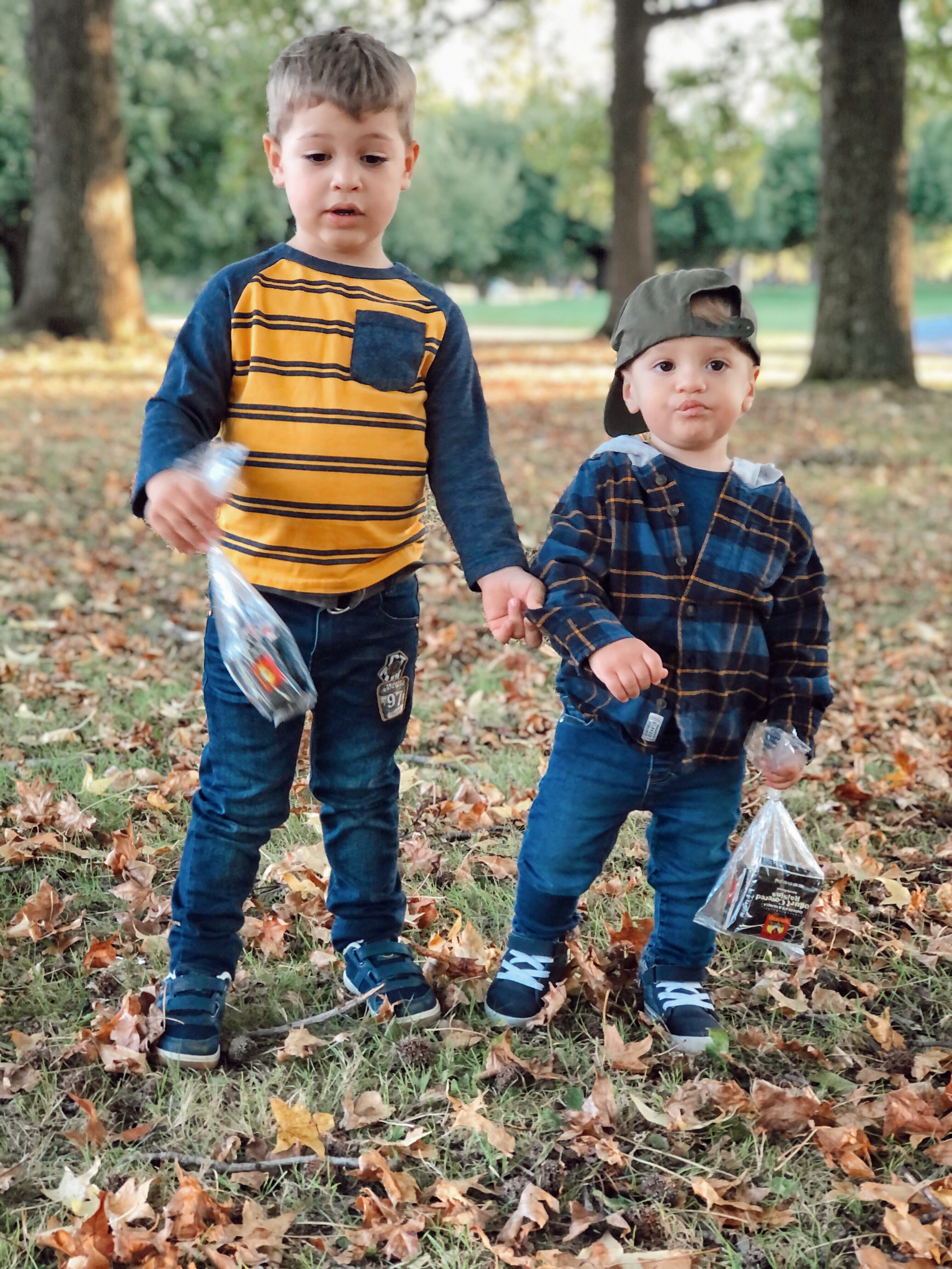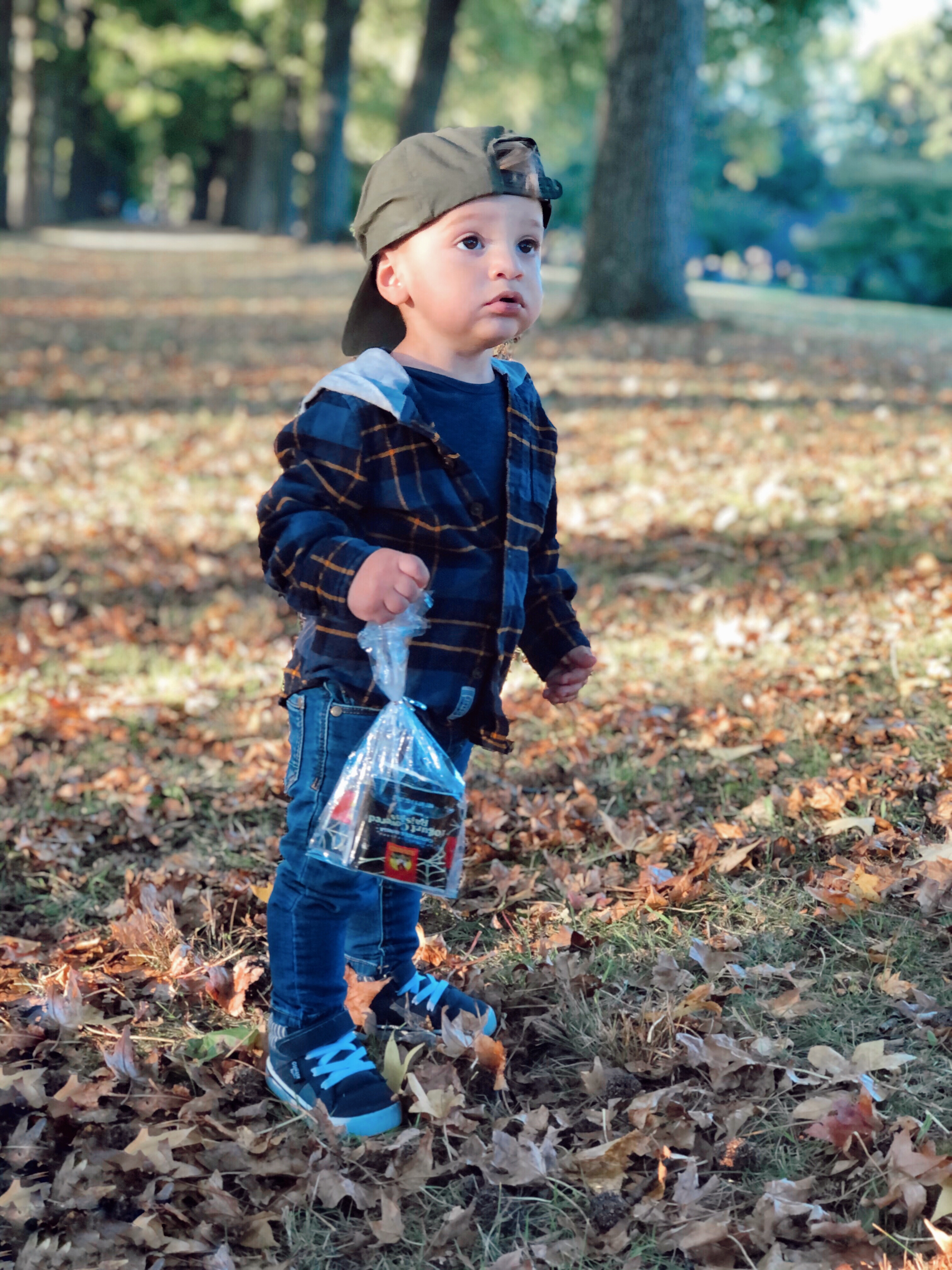 I have thought about many DIY projects, but let’s be honest, with a toddler and a pre-schooler it’s very hard to get crafts going without making a mess. So my idea was to go on a hunt for all things Fall to make a nature board at home. DryIY crafts like this can still be fun and the kids love. We picked a nice park by our house and walked hunting for nature items like colored leaves, sticks, acorns and all different things we could find. Then came home and glue it all to a cardboard. While we were outside I handed a bag with Sun-Maid Chocolate & Vanilla Yogurt Covered Raisins packs for each kid so they could snack at it while walking and having fun in nature.