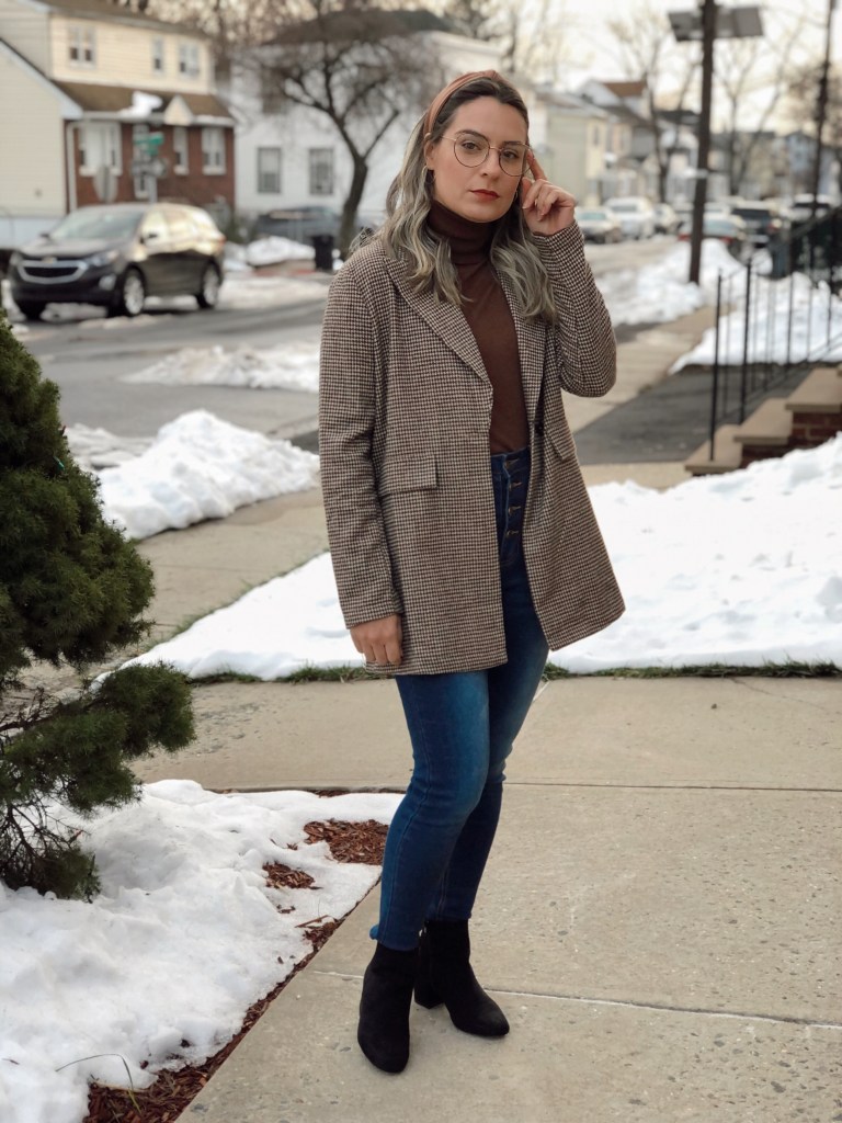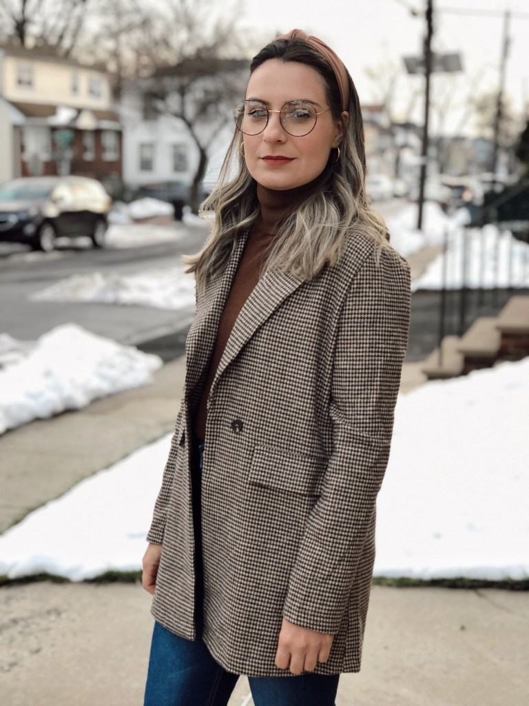 I love blazer and its part of my wardrobe. I have a variety of colors and styles because I think it looks so chic and it goes with everything. I just added a new Plaid Tweed Blazer and its so warm and perfect for this season. I love that it is a little bit longer. For this outfit I paired with a turtleneck and jeans for a casual look.
