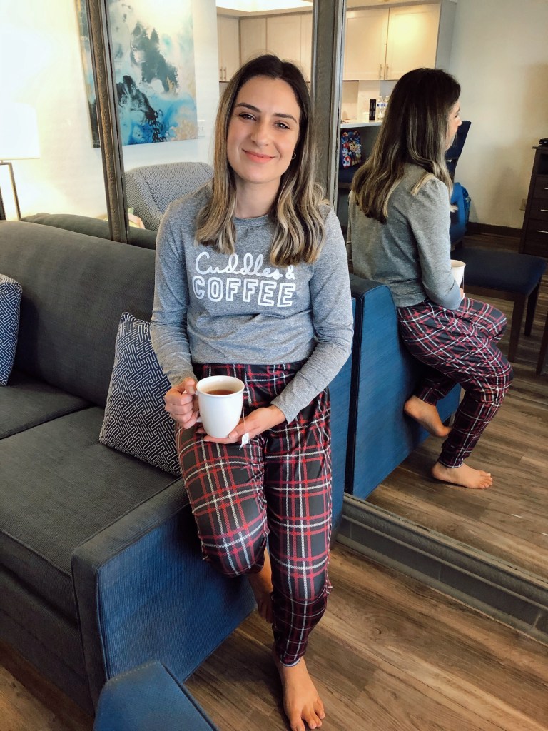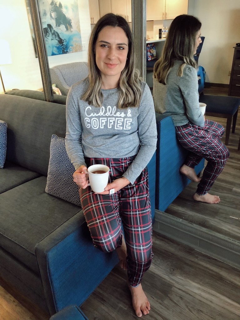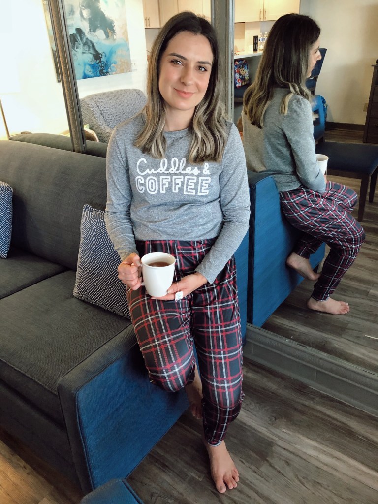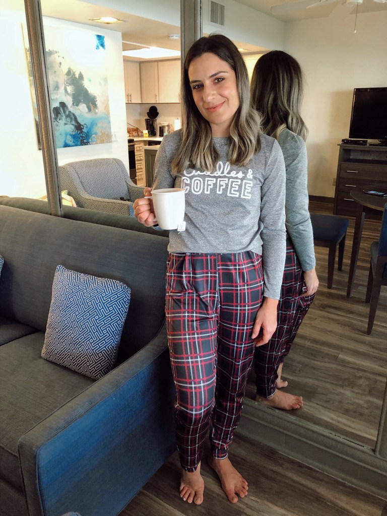 In the mornings I used to get out of our apartment to check the sunrise and I would take my tea or coffee and just walk outside wearing my pajamas. I love when pajamas are wearable like a lounge set and this one definitely is.