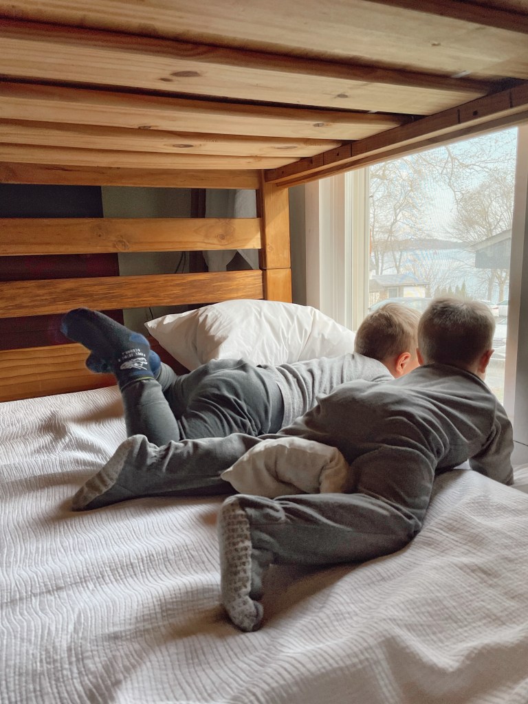 I must also mention that one bedroom had a bunk bed and the kids were super excited! It had a window with a partial lake view and they would stay in bed in the morning looking at the lake and searching for birds.