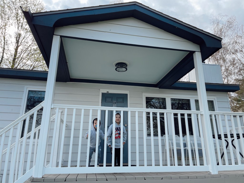We stayed at cottage 117 which has two bedrooms, fully equipped kitchen, living room with gas fireplace and one bathroom with stand up shower which was great because the boys are used to it and we did not need a bathtub. All rooms come with Keurig coffeemakers, flat-screen TVs and complimentary Wi-Fi. Cribs and rollaway beds are available upon request. It also had a lovely deck with table and chairs that I enjoyed relaxing at while the boys played ball in the lawn right in front of our cottage.