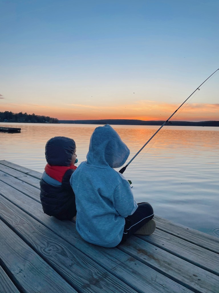Before settling in for the night on Monday, we decided to sit down on the dock by the lake and watch the sunset. We brought some fishing rod for the kids, just for fun! But I heard people really fish on Wallenpaupack Lake. It was so relaxing and watching the sunset from the dock was the most beautiful thing ever.