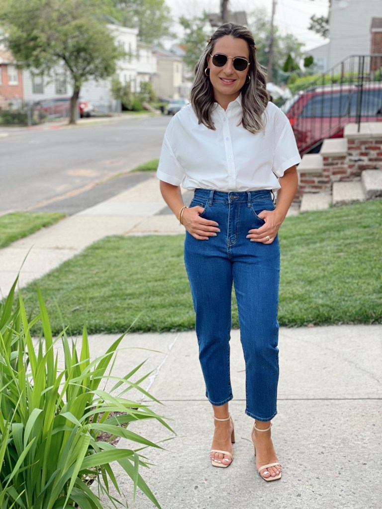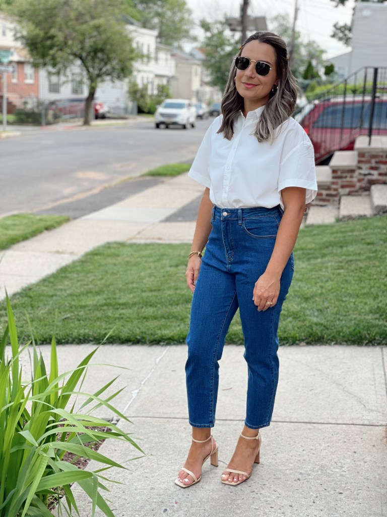 For this outfit I picked items everyone should have in their closet. I wore a high waisted cropped jeans and tucked the shirt inside. To elongate my legs, I wore a nude pair of heeled sandals. Gold accessories and some hair clips to finish the look.