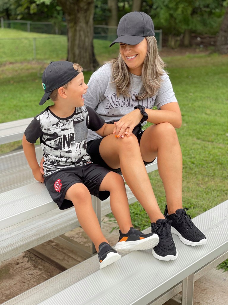 I’ve been living in biker shorts this summer. They are easy to style and goes with any tee shirt and sneaker you can think of! I really like a black, basic and simple pair of sneakers. This one is great and I kind of matched with my little one who was also wearing a comfy slip on sneaker from Cuccoowear – Shein.