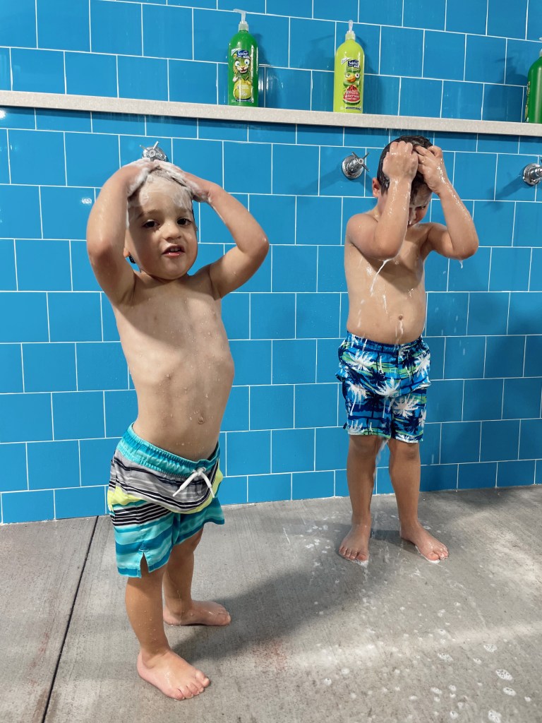 The poolside showers is the best thing ever! Kids can rinse off chlorine before heading inside to get dressed! They feature soap dispensers so the kids can get nice and clean before heading home. The boys love that they can take a shower “by themselves” lol.