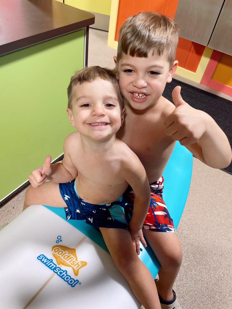Overall, we love our experience with Goldfish Swim School and the kids are learning a lot. They aren’t quite swimming on their own completely, but these perpetual lessons are really ensuring that they get weekly swim practice, feel comfortable in the pool, and understand water safety.