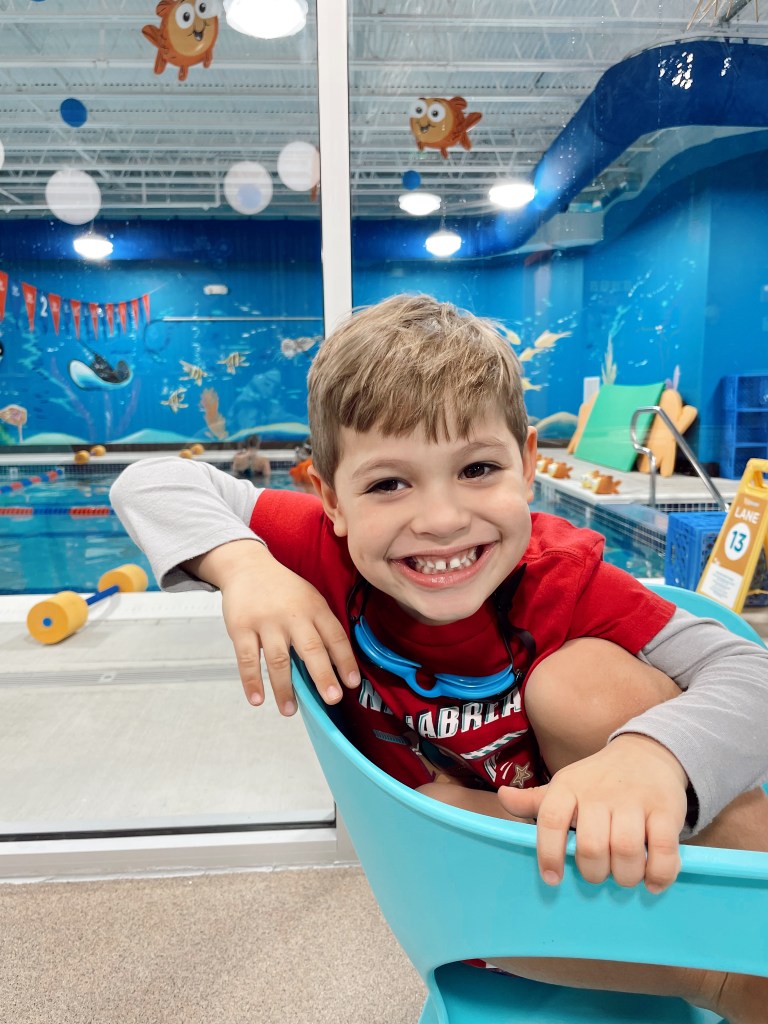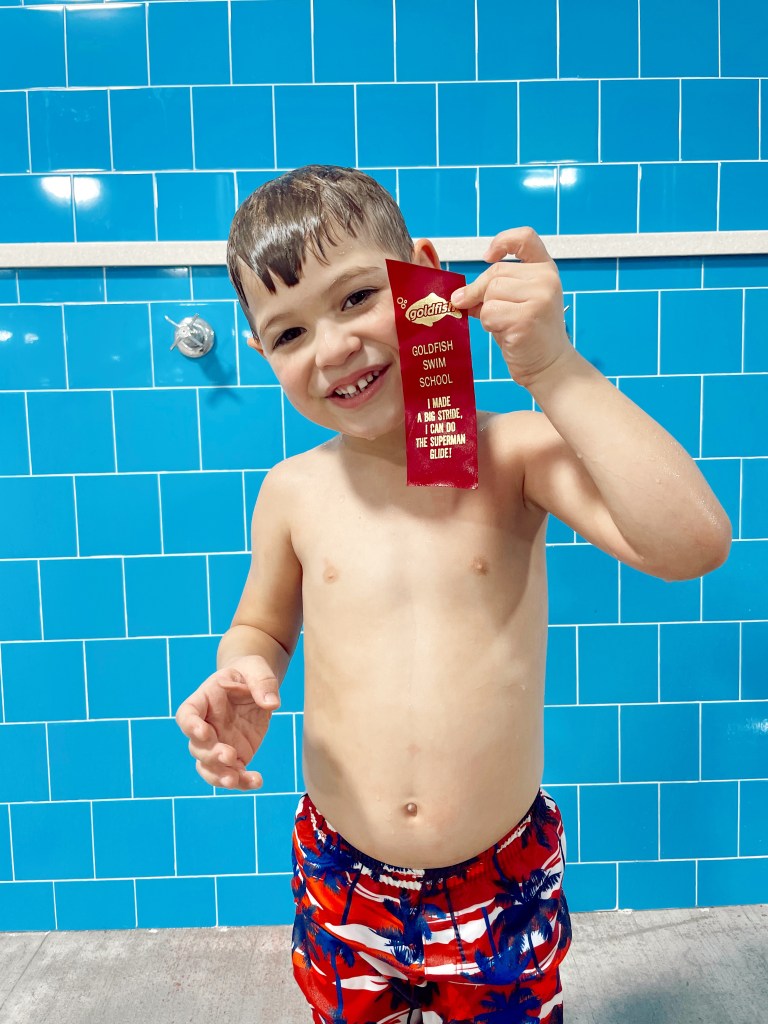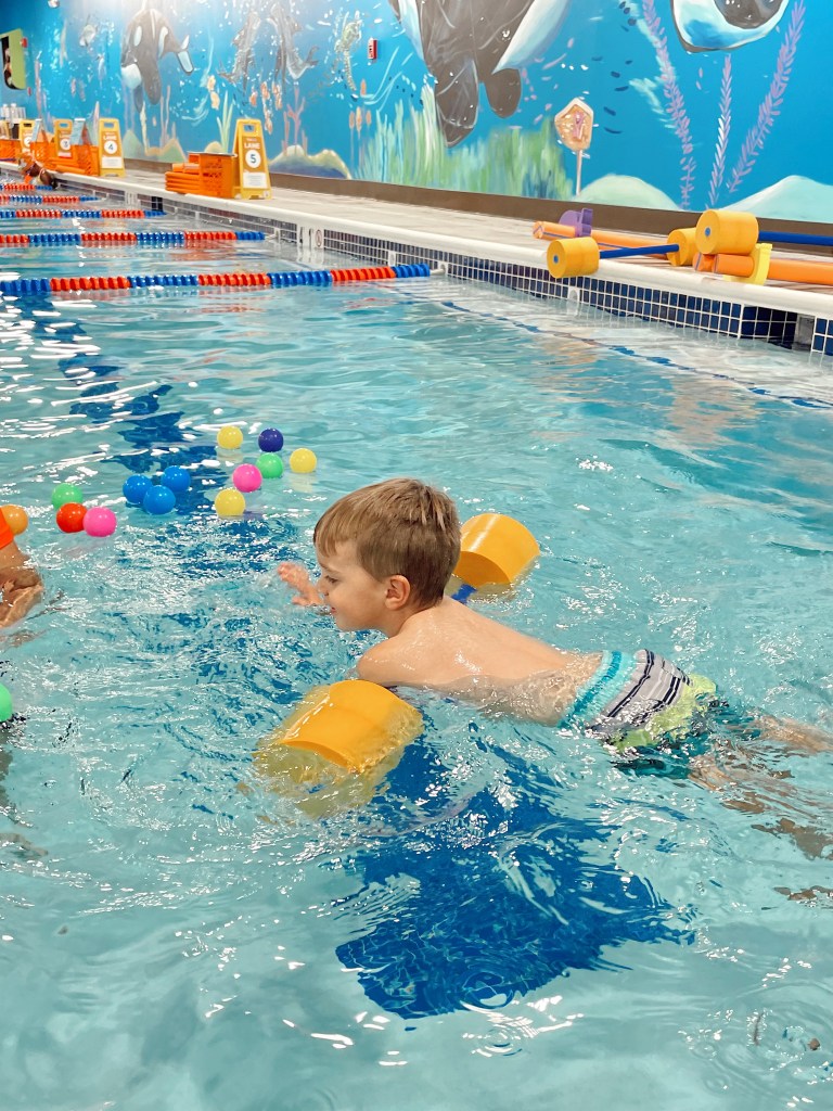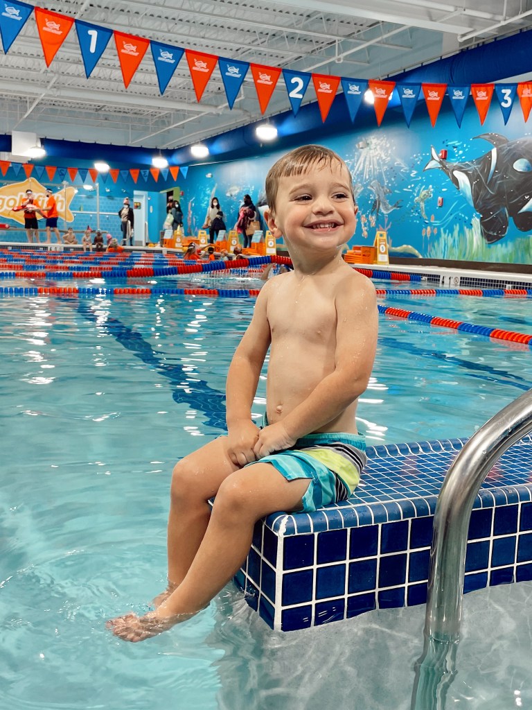 If you follow us on Instagram, you probably have seen that the kids are taking swim lessons at Goldfish Swim School in Springfield for the last few months and I wanted to share our experience with swim lessons because they’ve been such a positive asset to our lives.
