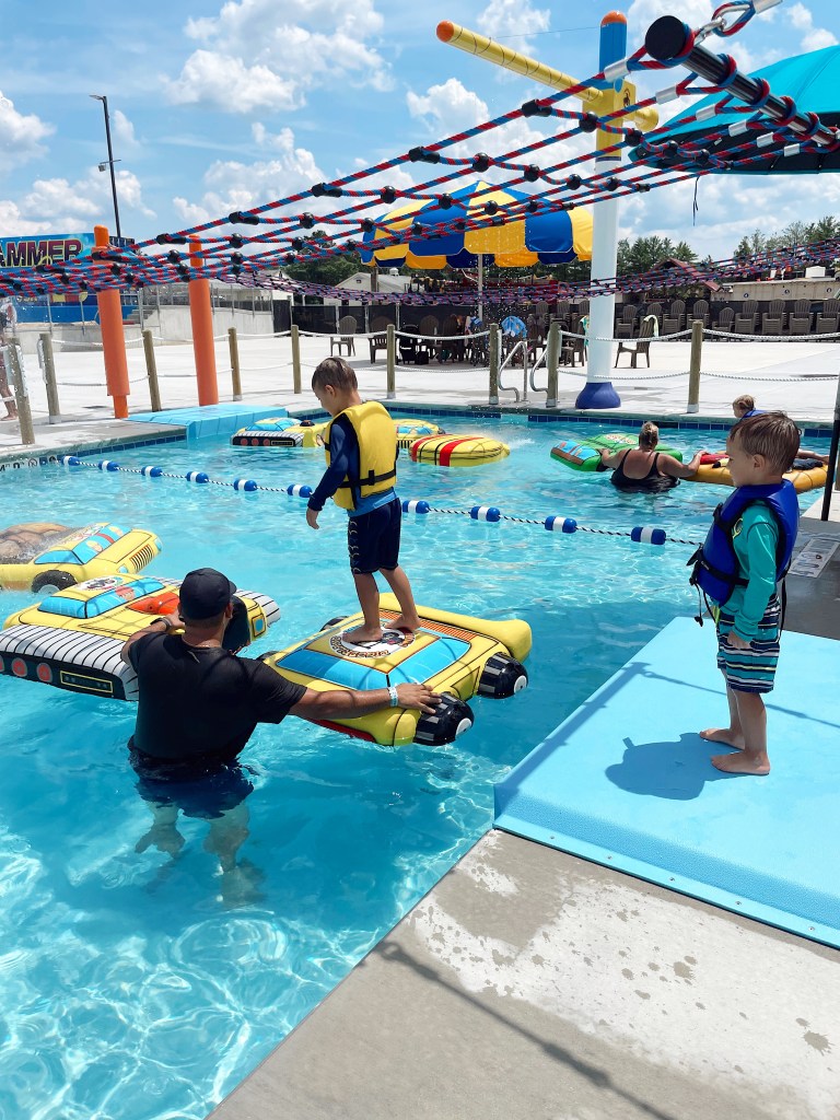We also checked the New Carpool Lane which offers two parallel courses for crossing the 24-foot-long pool using the themed pads and the overhead grid. Small children can totally try as long as there is an adult inside the pool supervising!