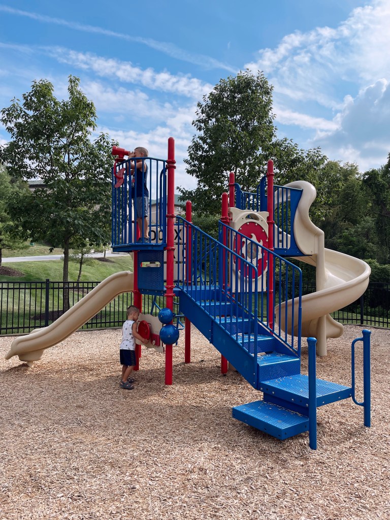There is a playground, a hiking trail (5.5 miles) and an outdoor sports complex featuring basketball, volleyball, tennis, pickleball, croquet, Spikeball, bocce ball, shuffleboard, cornhole and soccer.