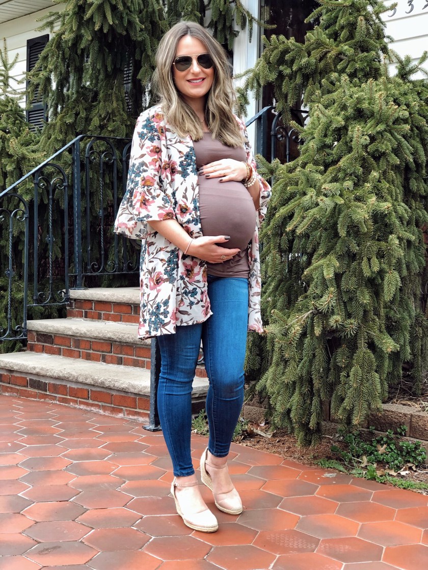 Hey guys!!! One super functional item I have in my closet that you can dress up or down is the kimono. I got this cute floral one from Shein and I love to wear over tee shirt and jeans or over a little black dress for a more formal look. As you can see my belly is big (almost 36 weeks) so I went for a casual comfy outfit wearing maternity jeans and tee shirt and the kimono on top make it super cute and break the basic. This kimono is part of the Shein sale and is only $10. You can also get extra 15% off using code shsale025 until April 14th. You can also use my code 4padoni20 for an extra 15% off site wide valid until June 30th. http://bit.ly/2GRKhjJ search ID 486115 Boa noite meninas! Um item que tenho usado muito durante a gravidez é o kimono. Ele deixa qualquer look mais bonito e da um toque feminino naquela produção mais básica de jeans e camiseta. Foi assim que criei meu look hoje. Optei …