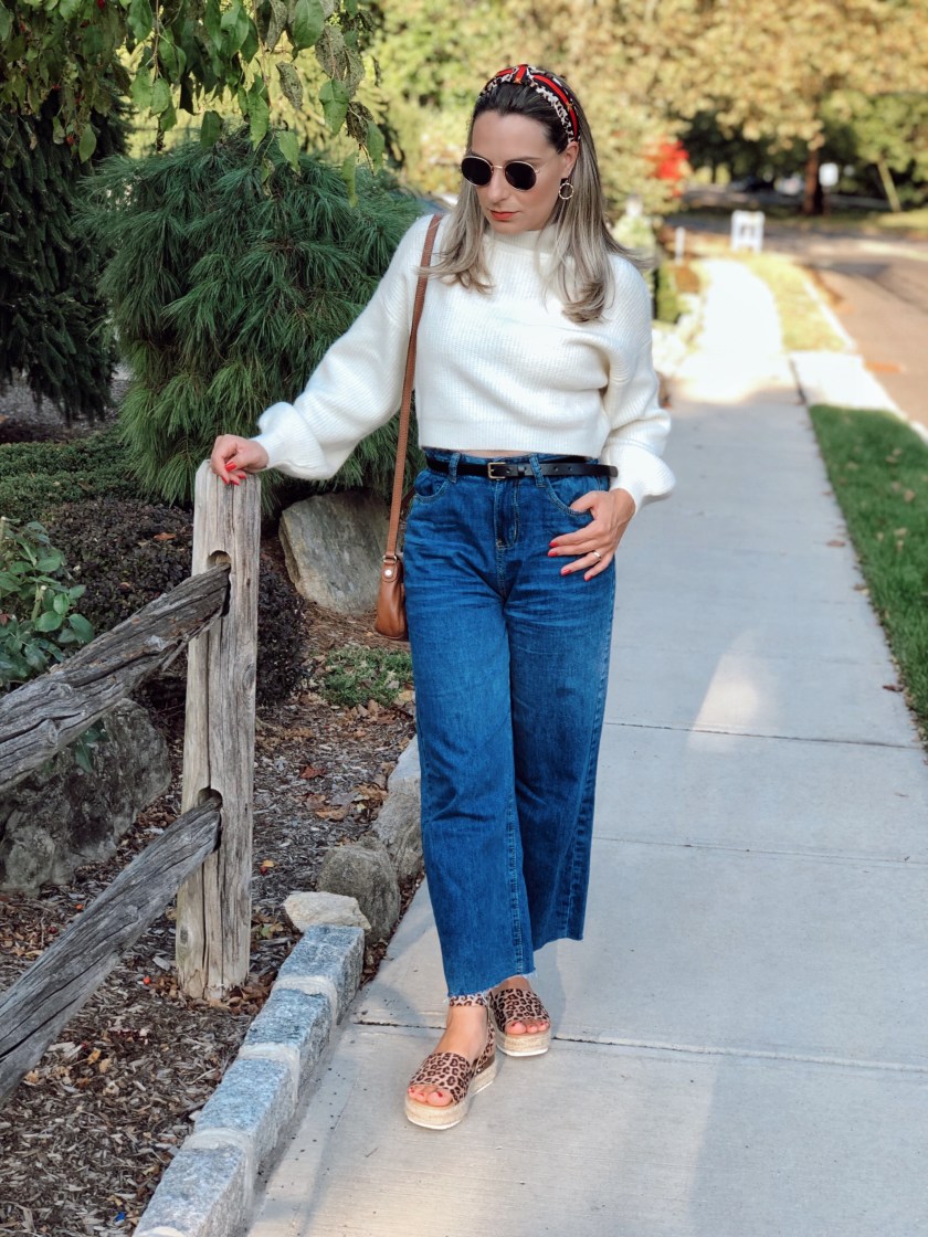 Outfit: Cropped Sweater and Wide Leg Jeans