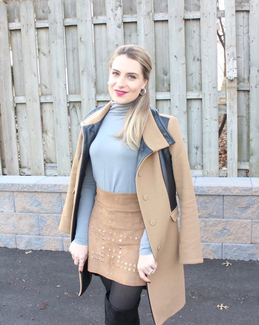 Bom dia my loves! O look de hoje é total em tons neutros, uma combinação que adoro de cinza com camelo, cores que estão super em alta agora no inverno e tenho certeza que vai ser tendência ai no inverno do Brasil. Para a minha produção, escolhi duas peças tendência da estação. Optei por uma saia de camurça com uma cacharrel por dentro e finalizei com meia calça e bota acima do joelho para manter o look mais quentinho. Para deixar o look mais charmoso, joguei um casaco sobretudo por cima. Vejam como ficou: Gostaram do look? Ainda essa semana vou postar video com um lookbook de inverno, mostrando algumas ideias de look para dias mais gelados. Saia: Zara Blusa: Zara Casaco: Zara Bota: Charlotte Russe Batom: Fashion Revival- MAC Photos: Kecia do canal e blog Dia a Dia nos EUA. (dei um descanso para o marido haha :))