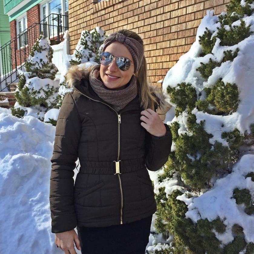 Ola pessoal! Meus queridos amigos de Sao Paulo, desejo a vocês um ótimo feriado! Aproveitem bastante essa segunda feira de folga 🙂 Hoje na verdade era para entrar um post com look do dia, mas esse final de semana tivemos uma nevasca por aqui e male mal conseguimos sair de casa. Sábado nevou o dia inteiro e as autoridades decretaram estado de emergencia e ninguém podia sair de casa e se saísse ou dirigisse corria o risco de levar multa e ate ser preso! Sim! eles levam isso super a serio! O domingo amanheceu lindo. Sol raiando e muita neve para limpar…. mas estado precário para fazer fotos de look hahaha. Entao o jeito foi se agasalhar bem e ajudar o marido a limpar a frente da casa e desatolar o carro que ficou soterrado em baixo da neve 🙂 Gravei vários snaps (meu snap eh: jaque spadoni) e tirei algumas fotos no final da tarde em uma parque aqui pertinho. Não reparem a qualidade porque tiramos com o celular e ja estava escurecendo! Vejam …