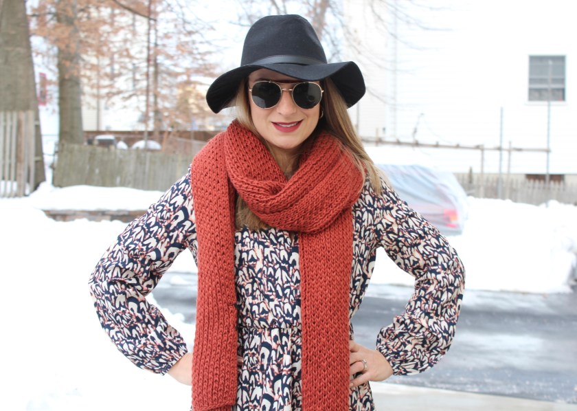 Apesar do frio rígido que esta fazendo aqui no hemisfério norte, e da neve acumulada após uma grande tempestade que tivemos no final de semana, não quero deixar de fazer fotos dos meus looks 🙂 E hoje vim mostrar um look bem legal com pegada boho usando um vestido vintage que recebi da Sheinside. Combinei esse vestidinho super lindo de manga comprida com botas acima do joelho e um cachecol bem grandao para manter aquecida. Finalizei o look com chapéu preto que é um acessório que esta super em alta e deixa o look com uma vibe boho. Vejam como ficou: O que acharam desse look? O vestido é Sheinside e custa apenas US$15!! Vale a pena conferir! Vestido: Sheinside Cachecol: Zara Bota OTK: Charlotte Russe Chapéu: Cohoes Batom: Bumble ColourPop