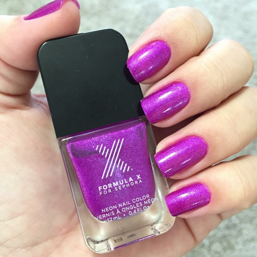 Oii gente! Não quero deixar acumular as unhas da semana, afinal sei que vocês adoram ver inspirações de esmaltes e nail art! Então já vou logo mostrar o esmalte escolhido semana passada. Uma cor super diferente e linda da linha cores néon da Sephora Formula X. A cor é a Hyped, um lilás com mistura de rosa e fundo um pouco cintilante. Depois que passei duas camadas, percebi que o acalento ficou um tanto fosco e não gostei muito, então finalizei com uma camada de top coat extra brilho e ficou assim: Gostaram da cor?